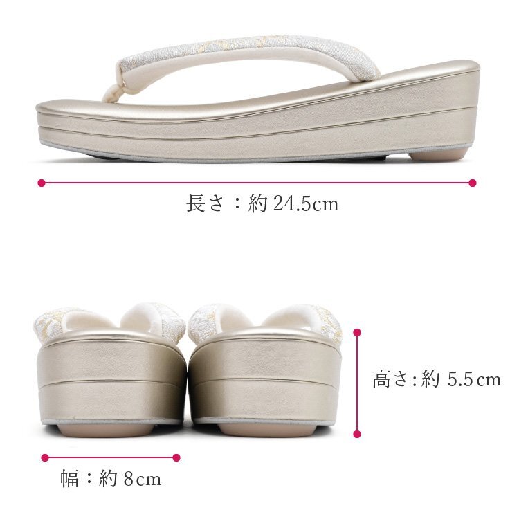 | サイズ | 【草履】 長さ:約 24.5cm 幅:約 8cm 高さ:約 5.5cm 【バッグ】 幅:約21cm 本体高さ:約13cm 持ち手高さ:約12cm まち:約11cm |