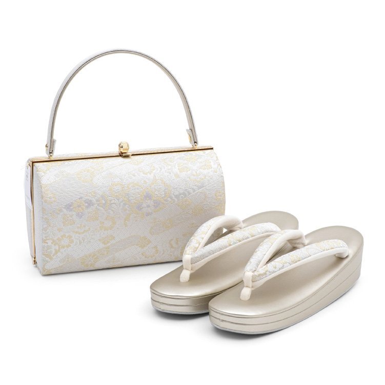 | 商品説明 | 高級草履バッグセット 細部にわたってしっかりときれいな仕立てが施されています。 バッグの生地と合わせた花緒の草履が 統一感を増し上品な美しい足元を演出します。 訪問着や留袖、附下げにもご使用頂けます。 |