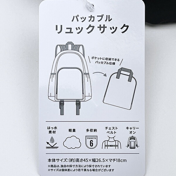 | 商品名 | スヌーピー ウッドストック パッカブルリュックサック ブラック バッグ SNOOPY |