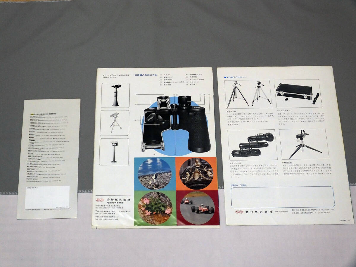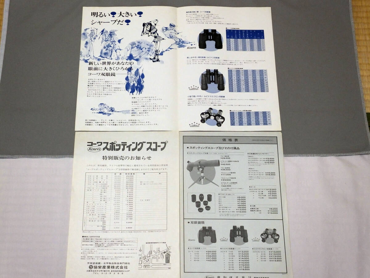 コーワのカタログには作製年の記載はありませんが,ニコンと同時に手に入れていたことと,スポッティングスコープのカタログの裏面下部に 780610 とありますので,ニコンと同じ1978年のものと思います。
