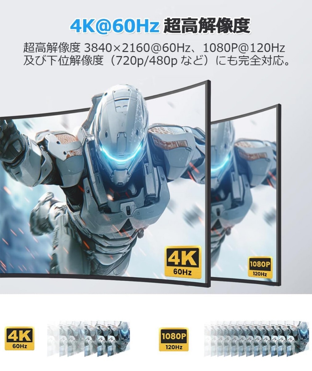 【4K@60hz超高解像度・低遅延で高精細な映像】このHDMIスプリッターは、超高解像度3840×2160@60Hz、HDCP2.3、HDMI2.0b、HDR10+、18.5Gbps帯域幅をサポートし、下位解像度(1080i/720p/480pなど)にも完全対応しています。さらに、RGBカラースペースを完全サポートしており、色ずれやグラデーションの段差が発生しにくい特性を持ち、高精度な画質を再現します。PCゲーム環境においては、GPUから直接出力されるRGB信号を変換せずに伝送することで、入力遅延を最小化。