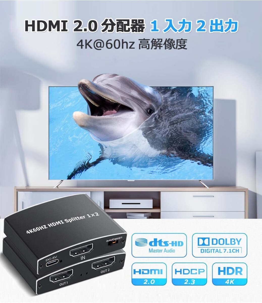 【簡単接続・多用途活用】このHDMIスプリッターをHDMIケーブルで入力&出力デバイスと接続するだけでご利用いただけます(HDMIケーブルは別途でご用意ください。HDMI2.0規格以上推奨)。専用のAPPやドライバーは不要で、ケーブルを接続するだけで設定が完了します。ホームシアター、企業会議、在宅勤務、テレワーク、教育現場、映像編集、展示会、プレゼンテーション、テレビの展示販売、ゲーミングセットアップなど、さまざまなシーンでAV体験を2画面に簡単に共有できます。4K HDRコンテンツの美しさを損なうことなく、柔軟なマルチディスプレイ環境を構築可能です。