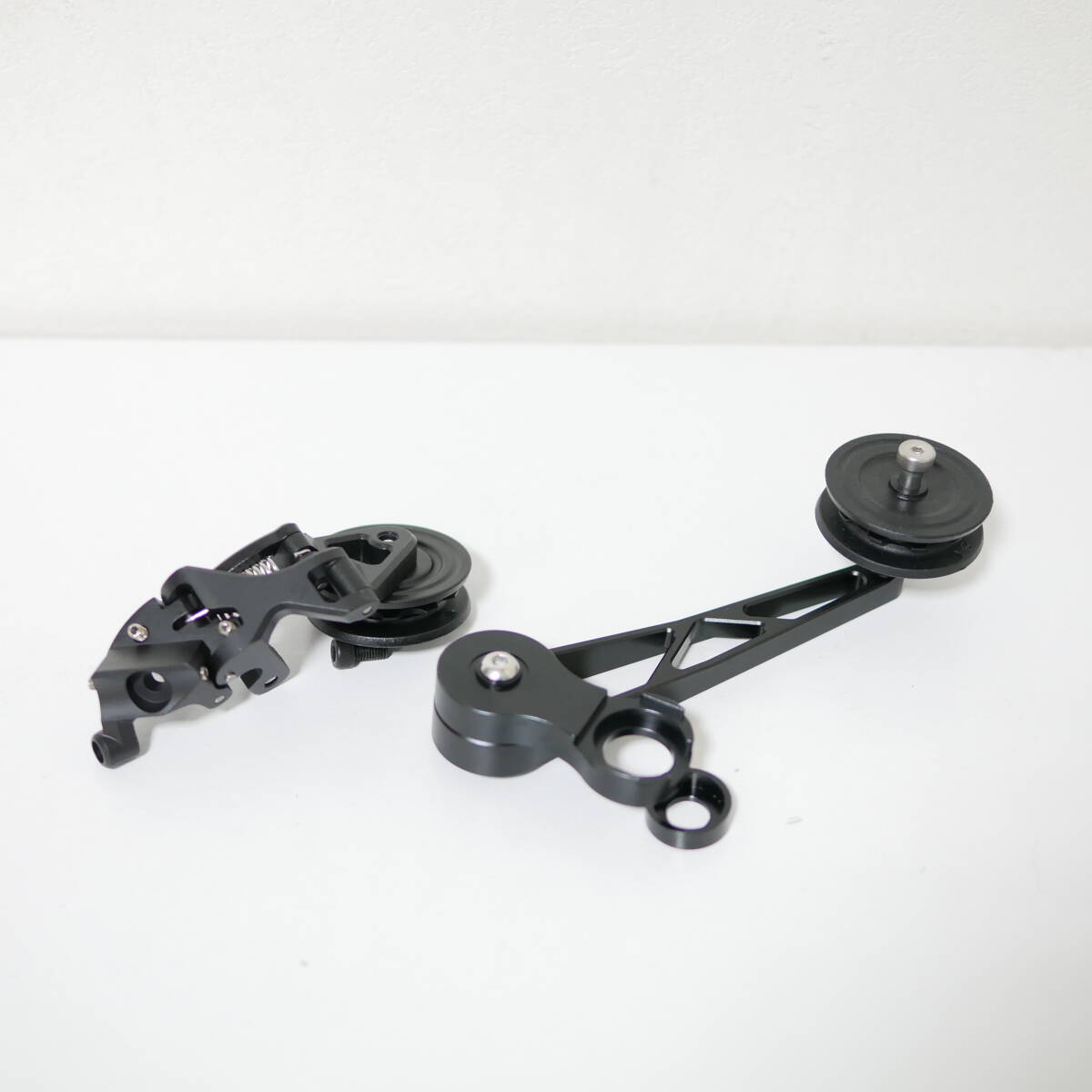 * BROMPTON 純正4速 チェーンテンショナーをベースとして再設計し、外装用最大7速ギアホイール用に改良しました。