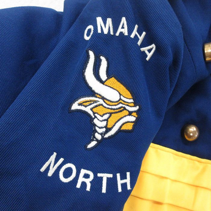 【商品名】 M★古着 長袖 ジャケット メンズ 90年代 90s オマハノースバイキングス ショート丈 スタンドカラー USA製 紺他