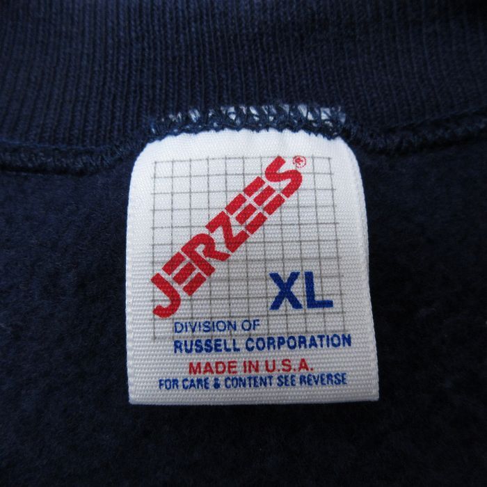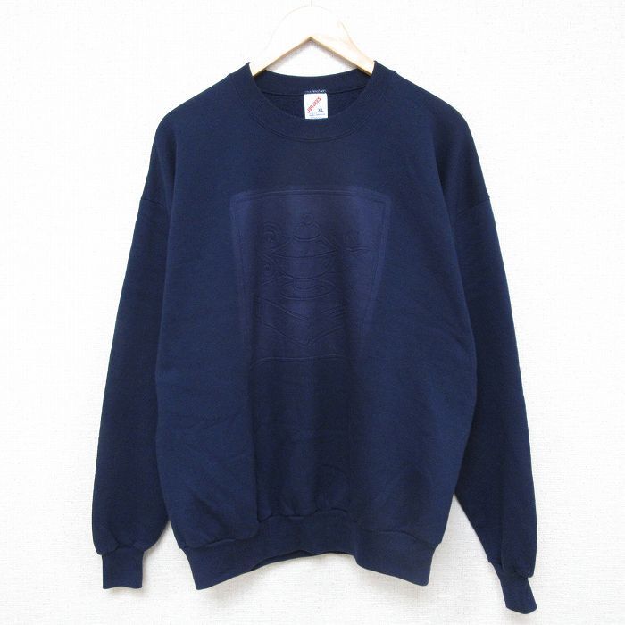 【商品名】 L★古着 ジャージーズ 長袖 スウェット メンズ 90年代 90s ティーポット 本 クルーネック USA製 紺