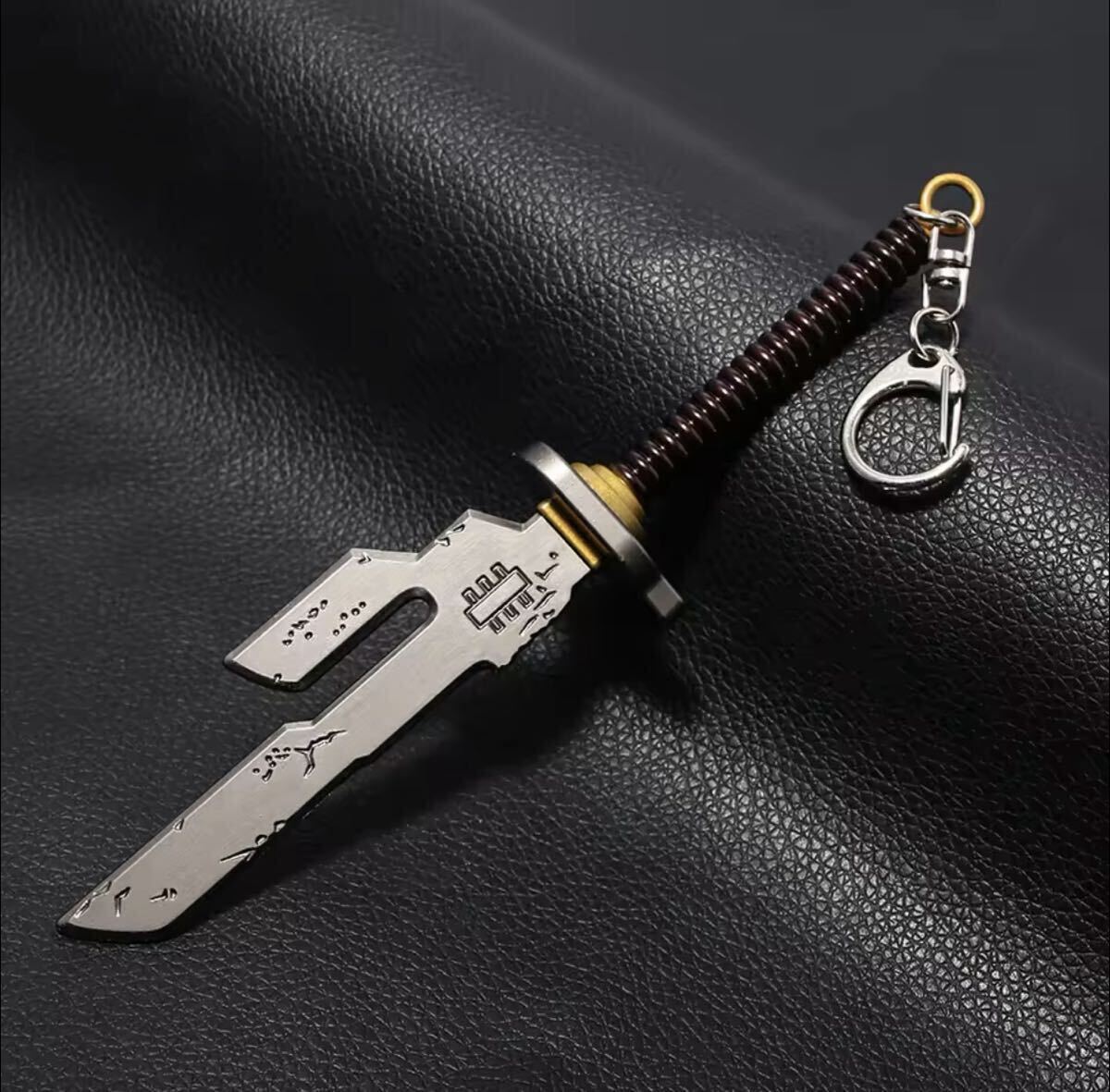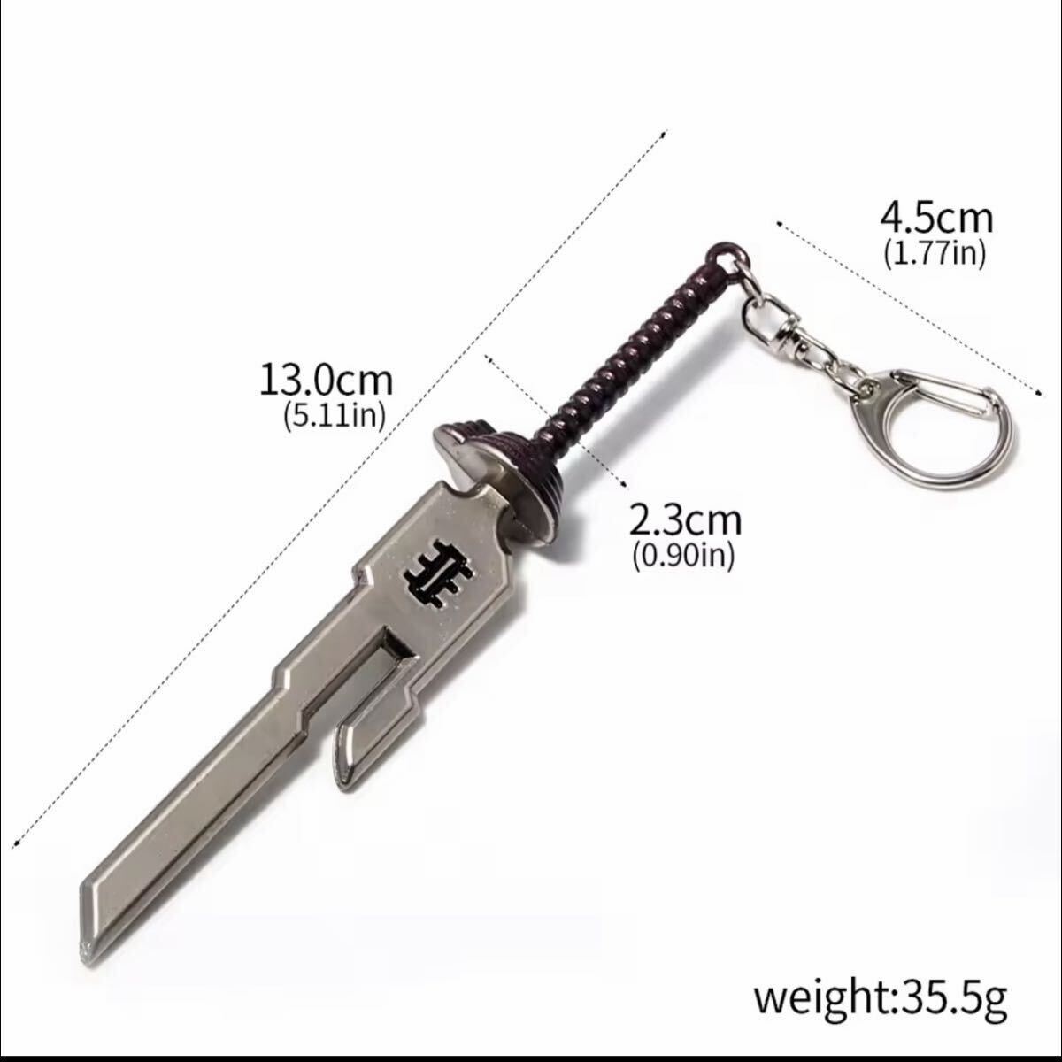伏黒甚爾「Toji Fushiguro」が使用した代表的な呪具の「天逆鉾」です。天逆鉾は相手の術式を強制解除する特殊な能力を持ち、五条悟の術式を破るのに使用された刀のキーホルダーとなります。