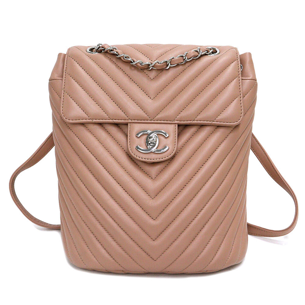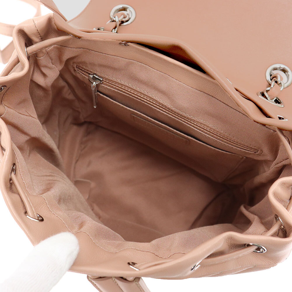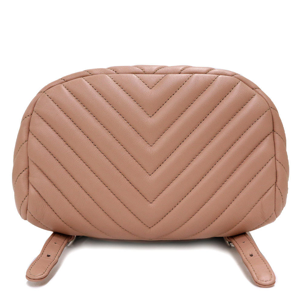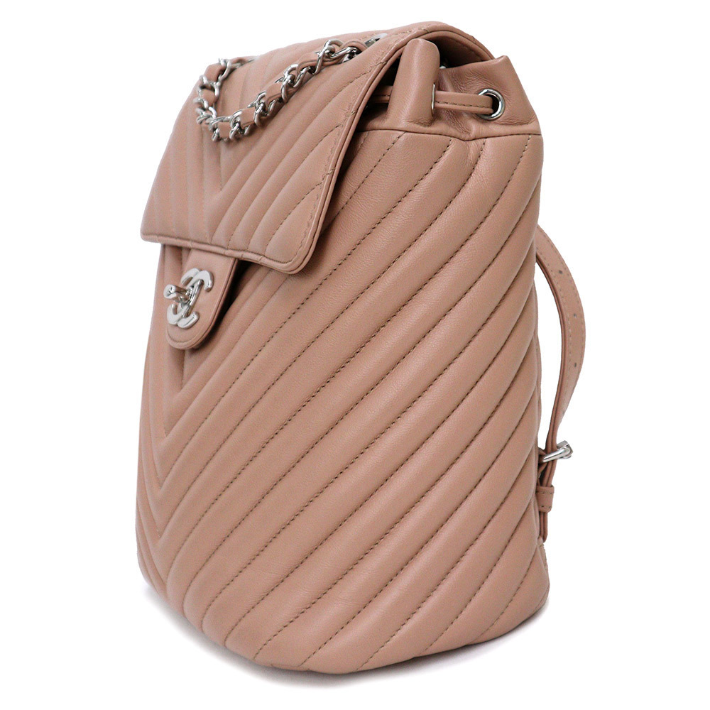 (美品)シャネル CHANEL シェブロン スモール チェーンリュック デイパック バックパック ラムスキン レザー ベージュ A91121