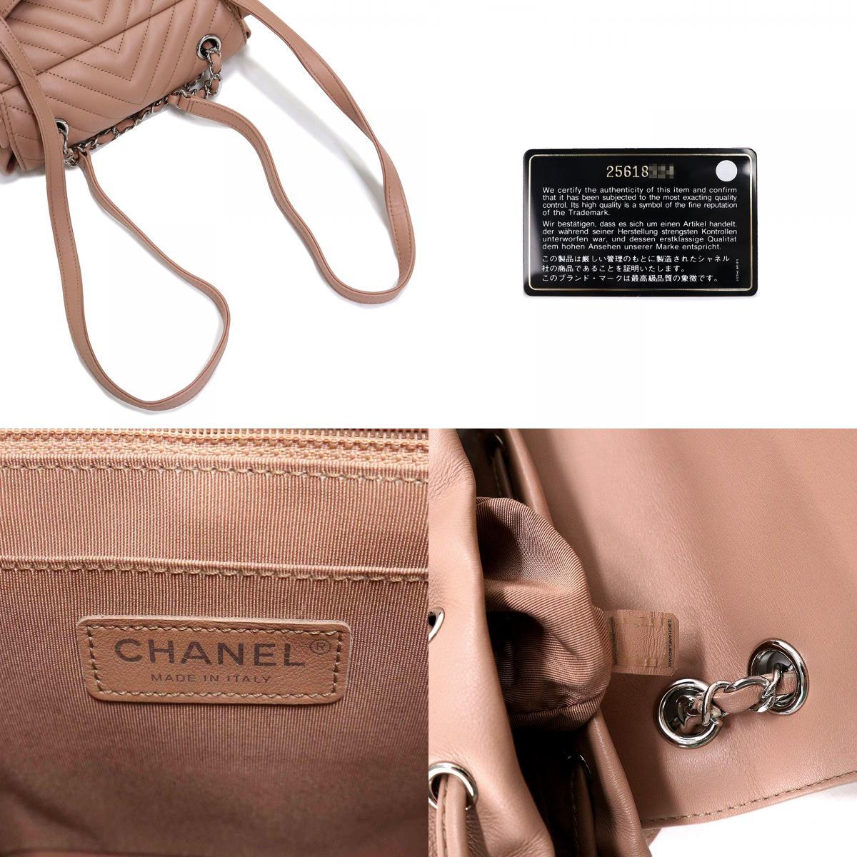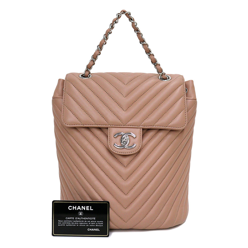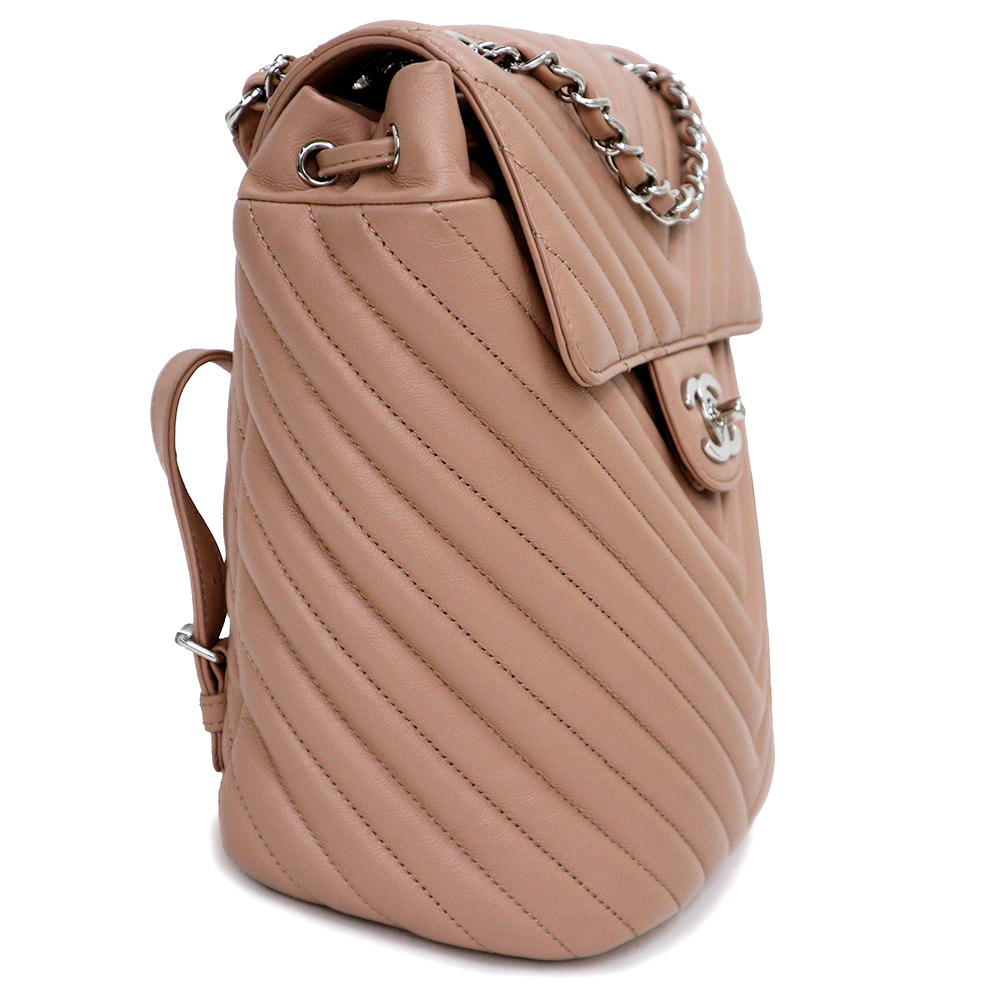 (美品)シャネル CHANEL シェブロン スモール チェーンリュック デイパック バックパック ラムスキン レザー ベージュ A91121