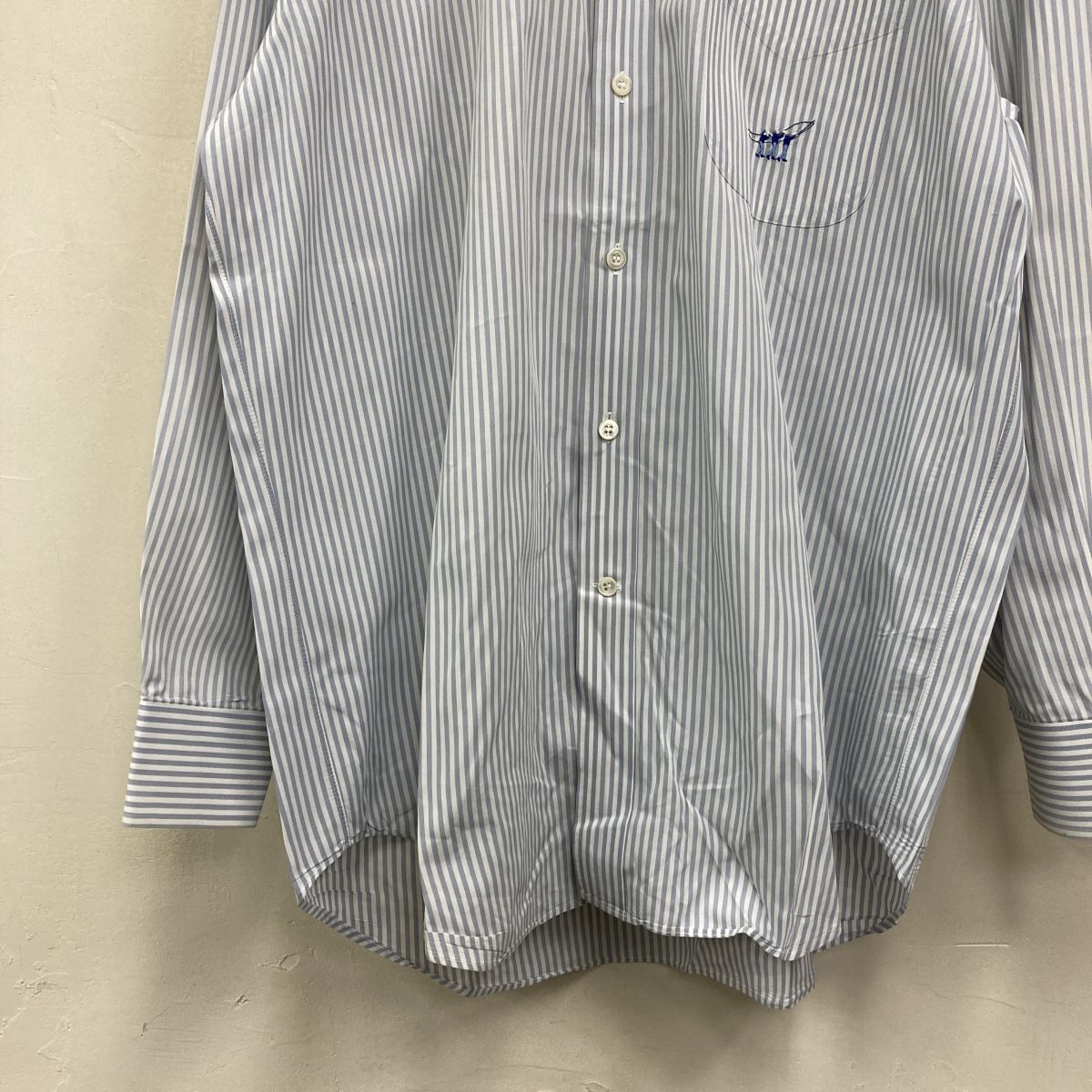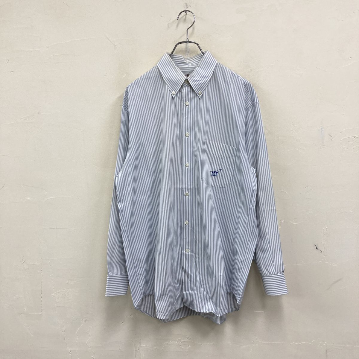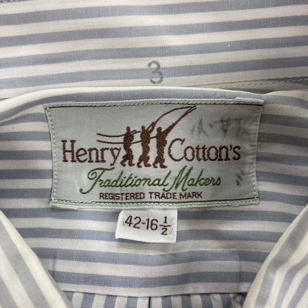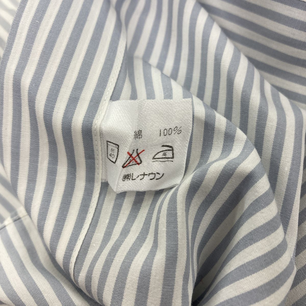 2K3009-Y◆Henry Cotton's ヘンリーコットンズ 長袖ボタンダウンシャツ ストライプ 刺繍ロゴ センタータック ◆size42-16 1/2 ブルー 綿