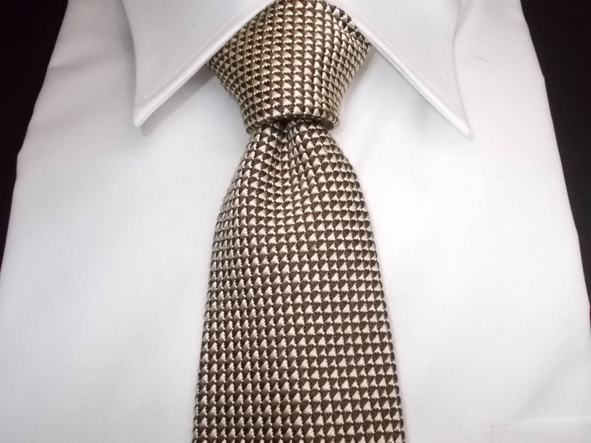 ◆剣先8.3cm ◆カラーブラウン/ベージュ系 ◆素材SILK60%COTTON40% ◆画像は実際の色とデジカメ、モニターの性能上多少異なる場合があります ◆部分的に毛羽立ち、糸の細かな飛び出し、剣先端に青い汚れがあります。その他特に気になるシミ、ダメージ等は、ありませんが、used品の為クレーム、返金はご遠慮ください |