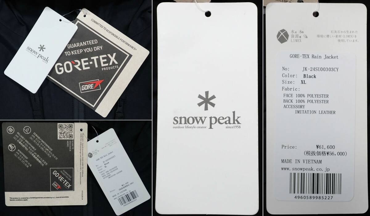 備考 snow peak GORE-TEX フード付ジャケットです。税込み定価61600円のタグ、ビニールパッケージ付き。Rain Jacket JK-24SU00303CY