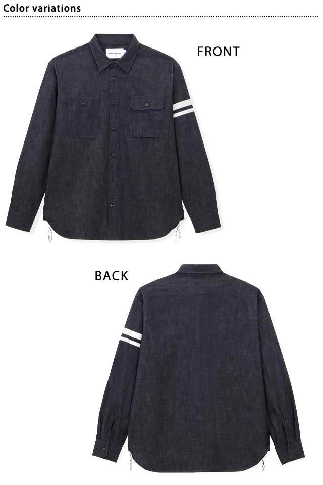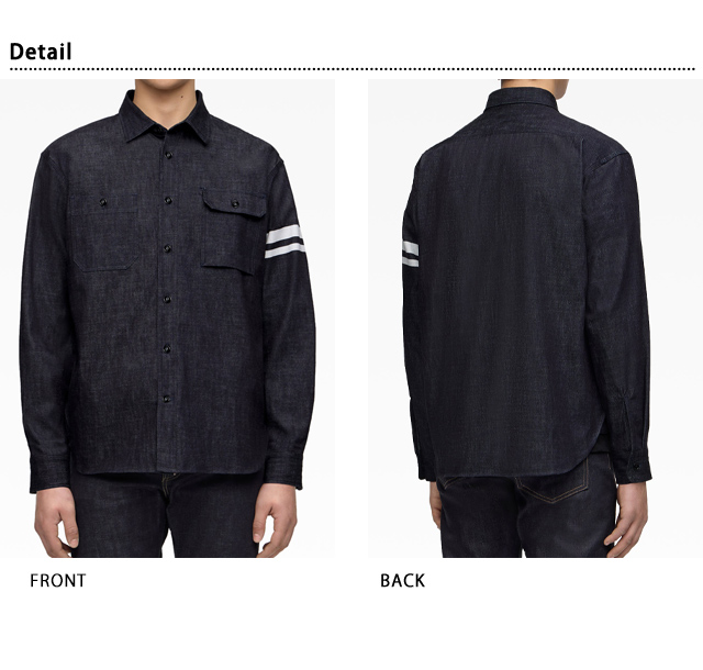 岡山の職人魂によって、デニムという素材そのものを理解し、染め・織り・縫い・洗いの細部に拘り、徹底的に探究した結果生まれる最高峰のジーンズを作り続ける【桃太郎ジーンズ】さんから「トリプルステッチ長袖シャツ/TRIPLE STITCH L/S DENIM SHIRTTWO STRIPES(MMLS3001)」のご紹介です。 丁寧に染め上げた特濃-TOKUNO BLUEが美しい8オンスセルヴィッチデニムをボディーに採用しました。 三本針の巻き縫い仕様の本格的なワークシャツでありながら、洗練された上品さを兼ね備えた1着です。 衿はコンパクトに、縫製を細かく仕上げ、洗練された印象を与えます。 左側は個性的なシガレットポケット仕様。 左袖にはMOMOTARO JEANSの原点を継承した二本線をプリント。 | |||||||||||||||||||||||||