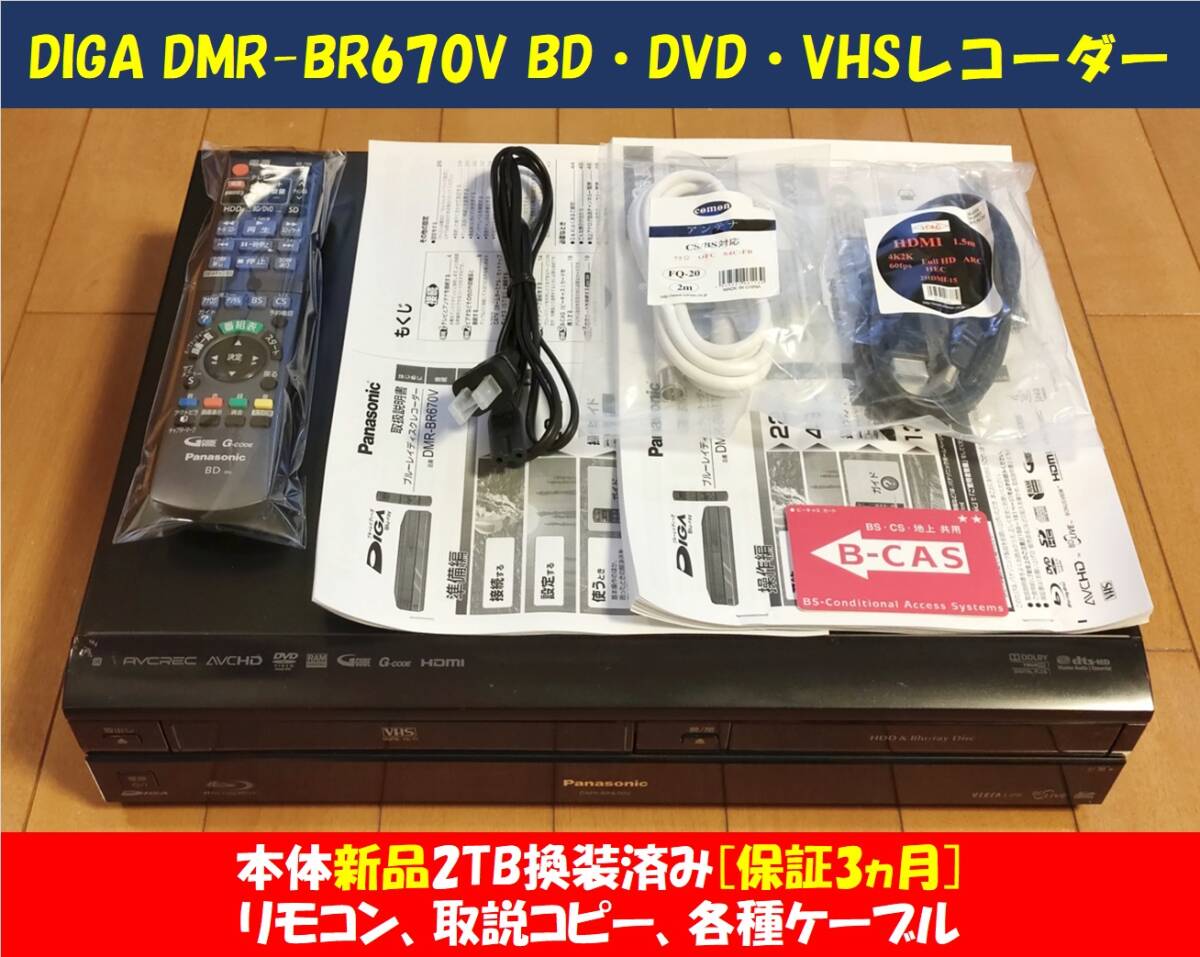 ◆◆ 2TB増量換装[3ヵ月保証] 美品 DIGA DMR-BR670V HDD・BD/DVD・VHS対応レコーダー リモコン・取説コピー・各種ケーブル 整備動作品