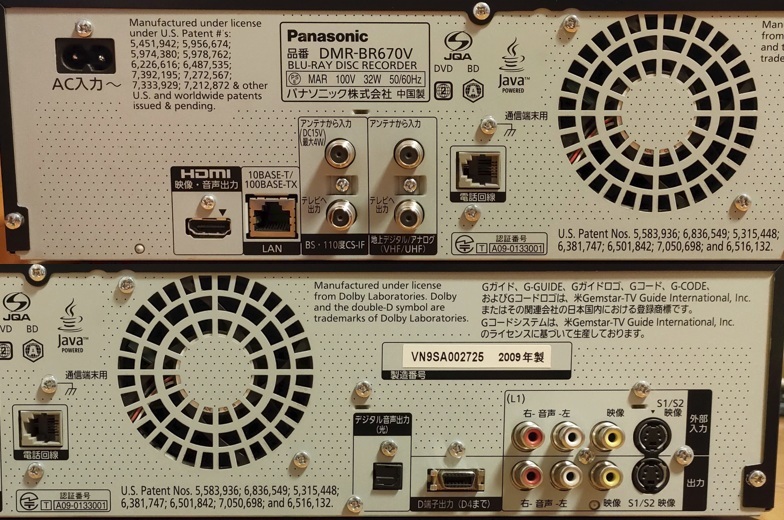 特にVHSメカ・ヘッド、BDドライブ、冷却FAN、電源部は重要です。
