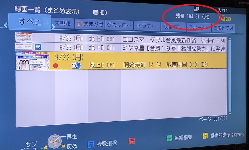 片面2層(50GB)ブルーレイディスクにHMモード録画時。