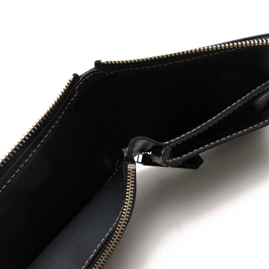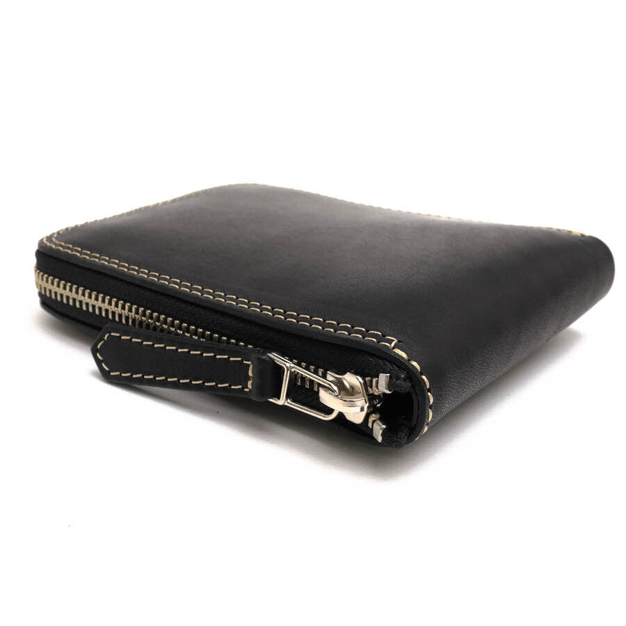 | 「PAILOT RIVER」ブランドの定番、ラウンドファスナーショートウォレット。オリジナルのサドルレザーを使用した本体は、経年変化を楽しむことができ、使うほどに味わい深くなります。ファスナー開閉で中身が一目瞭然、取り出しやすいデザインが採用されています。ウォレット内部には、カードポケットが7箇所も備わっており、小銭入れにはマチが付いており、容易にコインを取り出せます。その他、紙幣やレシートの収納スペースも十分。シンプルながらも使い勝手を追求した、スタイリッシュなショートウォレットです。 |