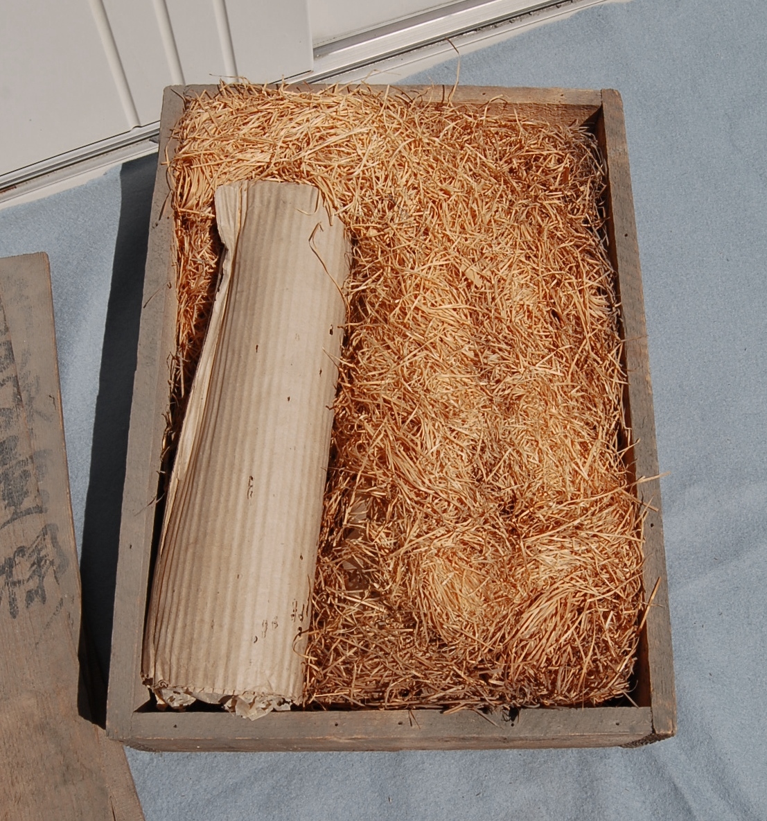 釘打ちのまま木屑クッションが多量に入った木箱保管でした。