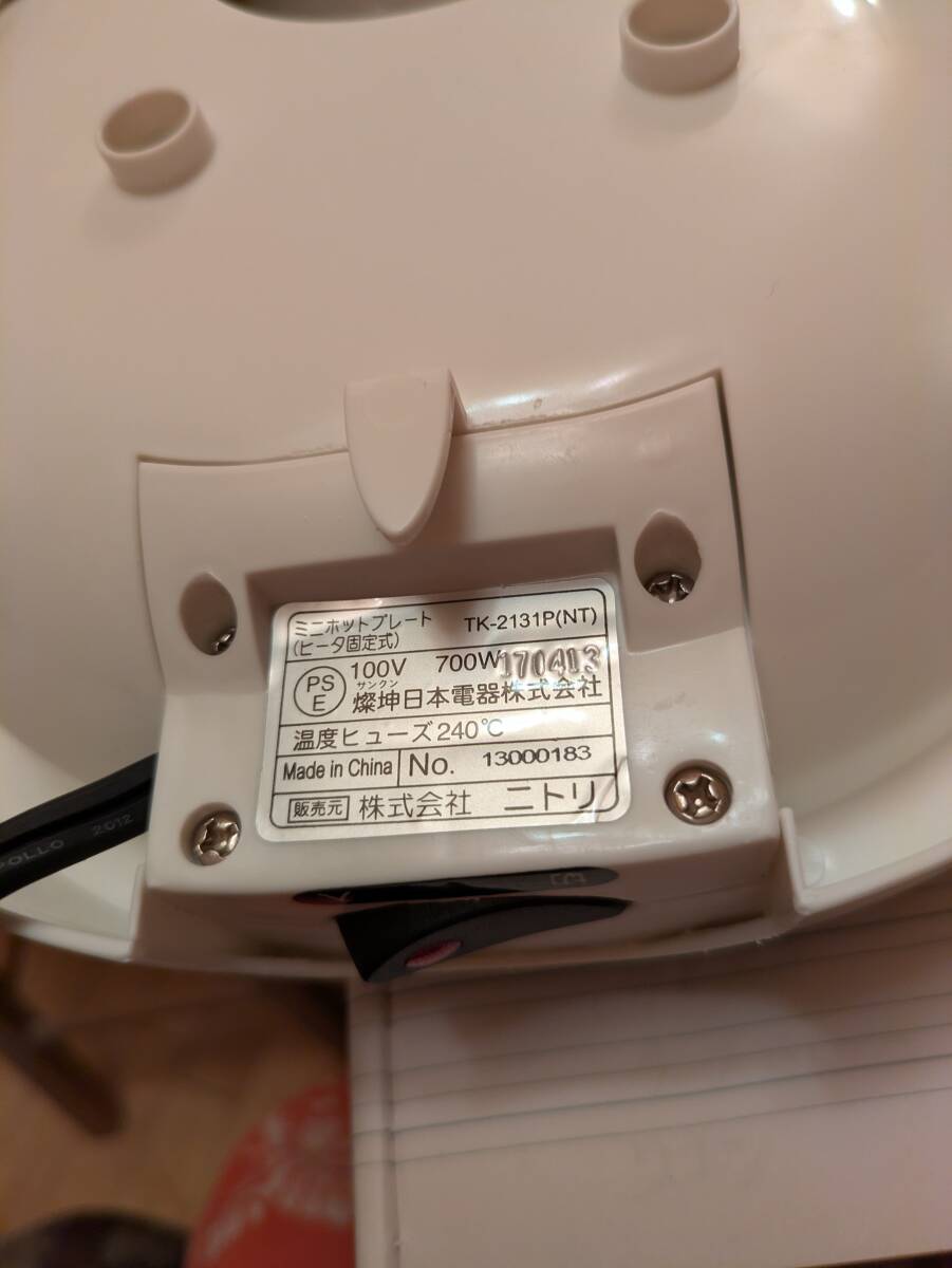 ニトリ ミニホットプレート(未使用品に近い)画像でご確認ください。ノークレームでお買い上げの方にお譲りいたします。送料は着払いになります。