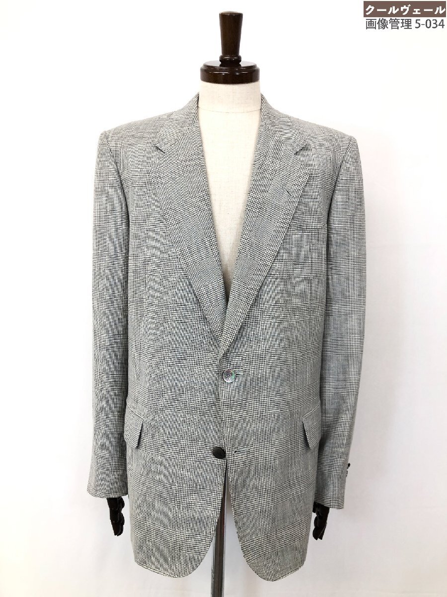 【ヒッキーフリーマン】SO-16687 麻×絹×カシミア混 2ボタン グレンチェック柄 ジャケット (メンズ) size54相当 グレー系 ◇17MJ0628◇