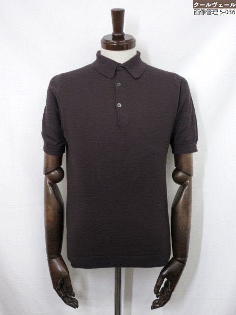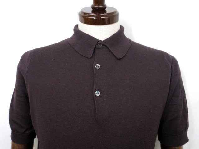 美品【ジョンスメドレー JOHN SMEDLEY】コットン100% 半袖ニットポロシャツ (メンズ) sizeS ブラウン系 イギリス製 ◇33MN6170◇