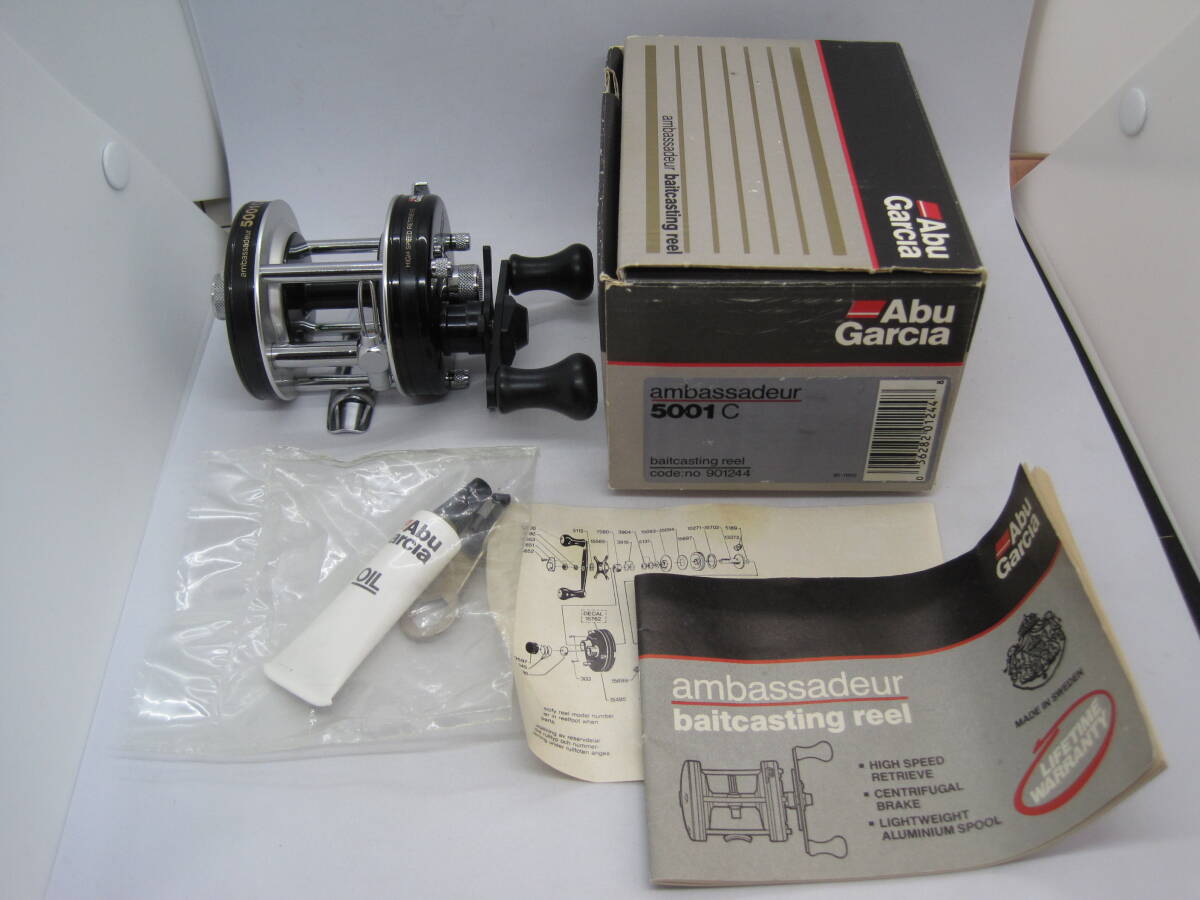 ABU アンバサダー 5001C 1986年製 新品未使用箱入り 付属品全部付き ビンテージリール フルオリジナル