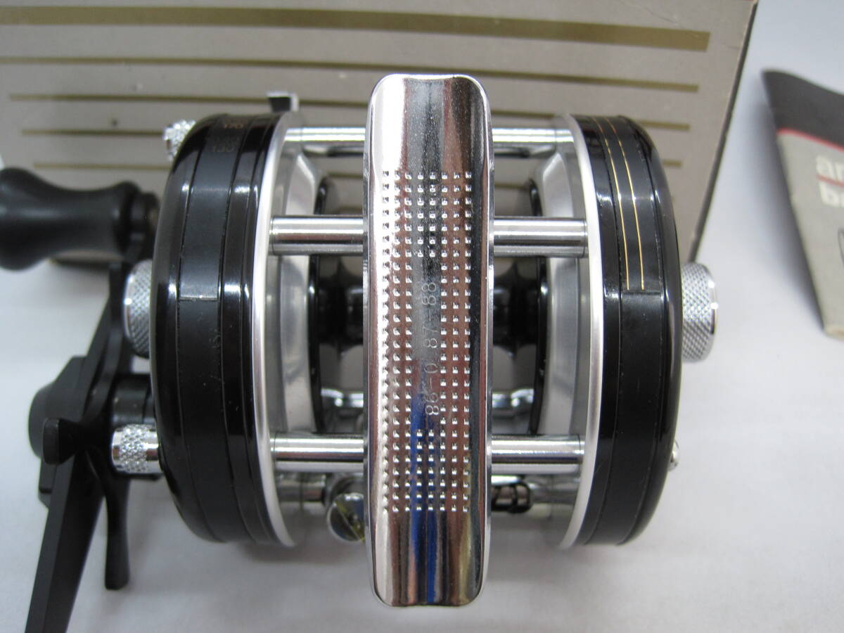 - 新品未使用箱入り。説明書とリール分解図、オイル、レンチ、スペアのブレーキブロックと、新品時の付属品が全部付いた非常に貴重なリールです。