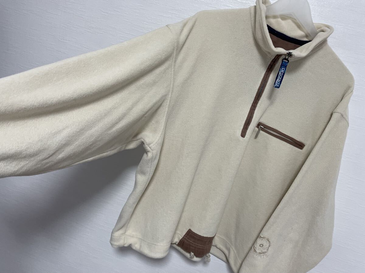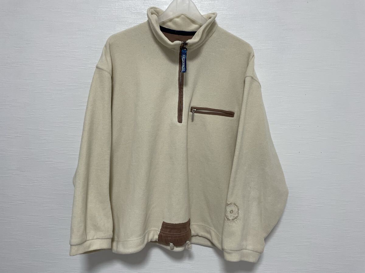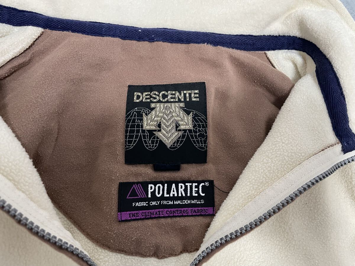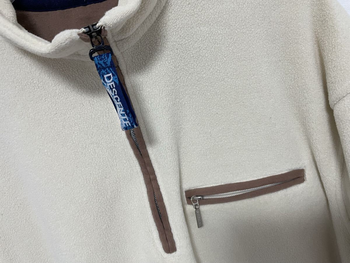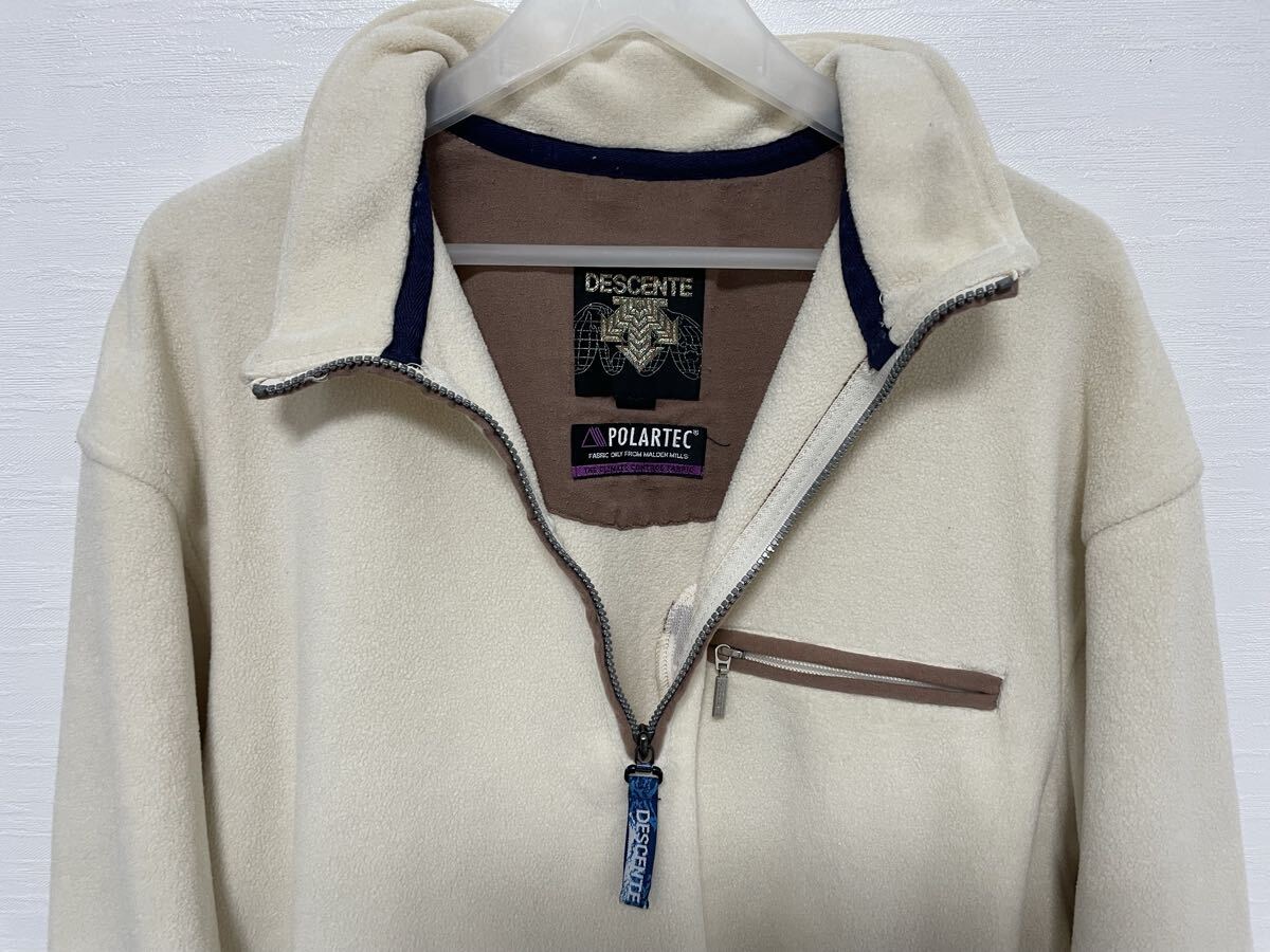 古着■サイズ M■DESCENTE ハーフzipフリース zip付ポッケ■アイボリー系