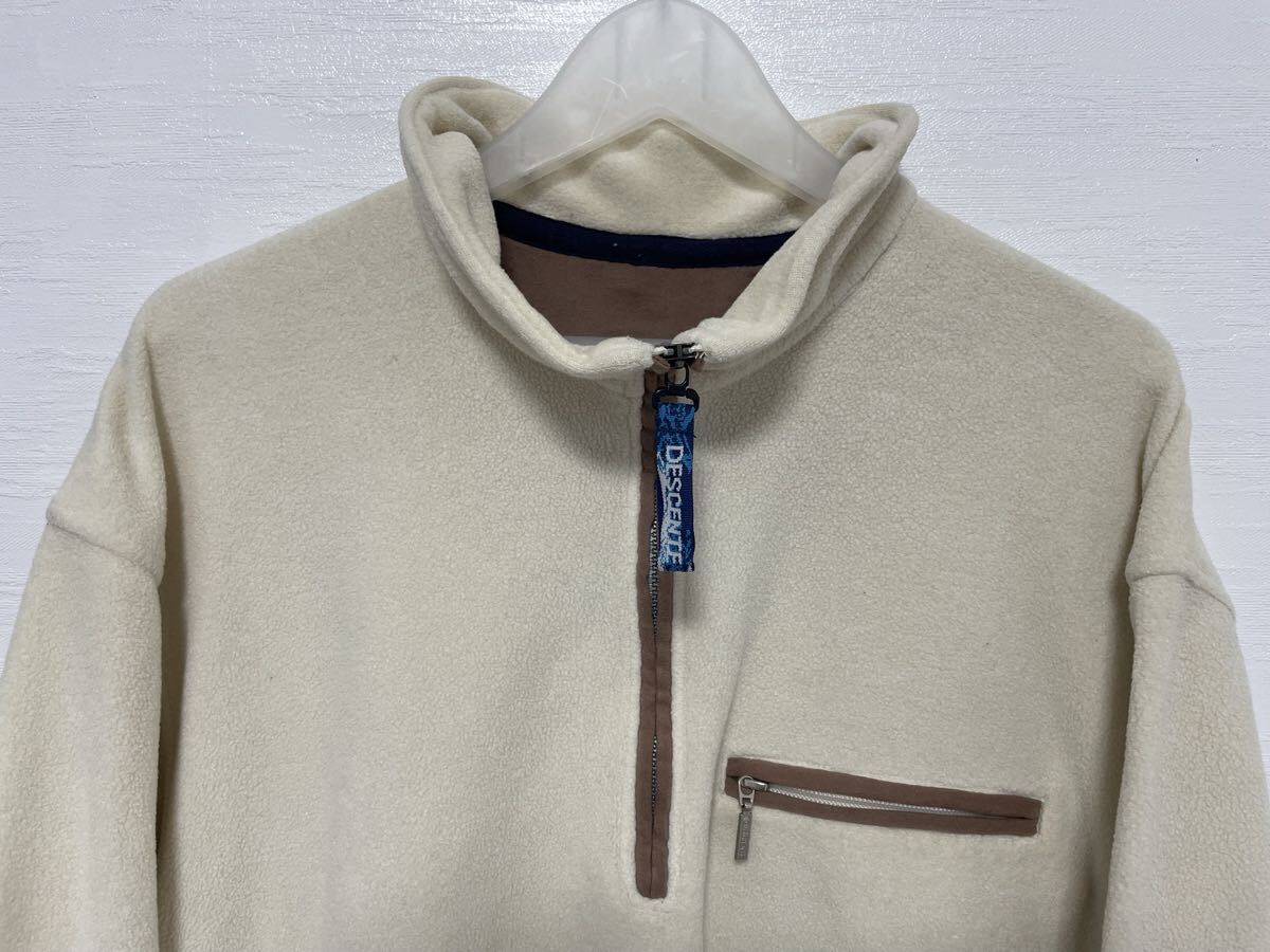 古着■サイズ M■DESCENTE ハーフzipフリース zip付ポッケ ストレッチ■アイボリー系
