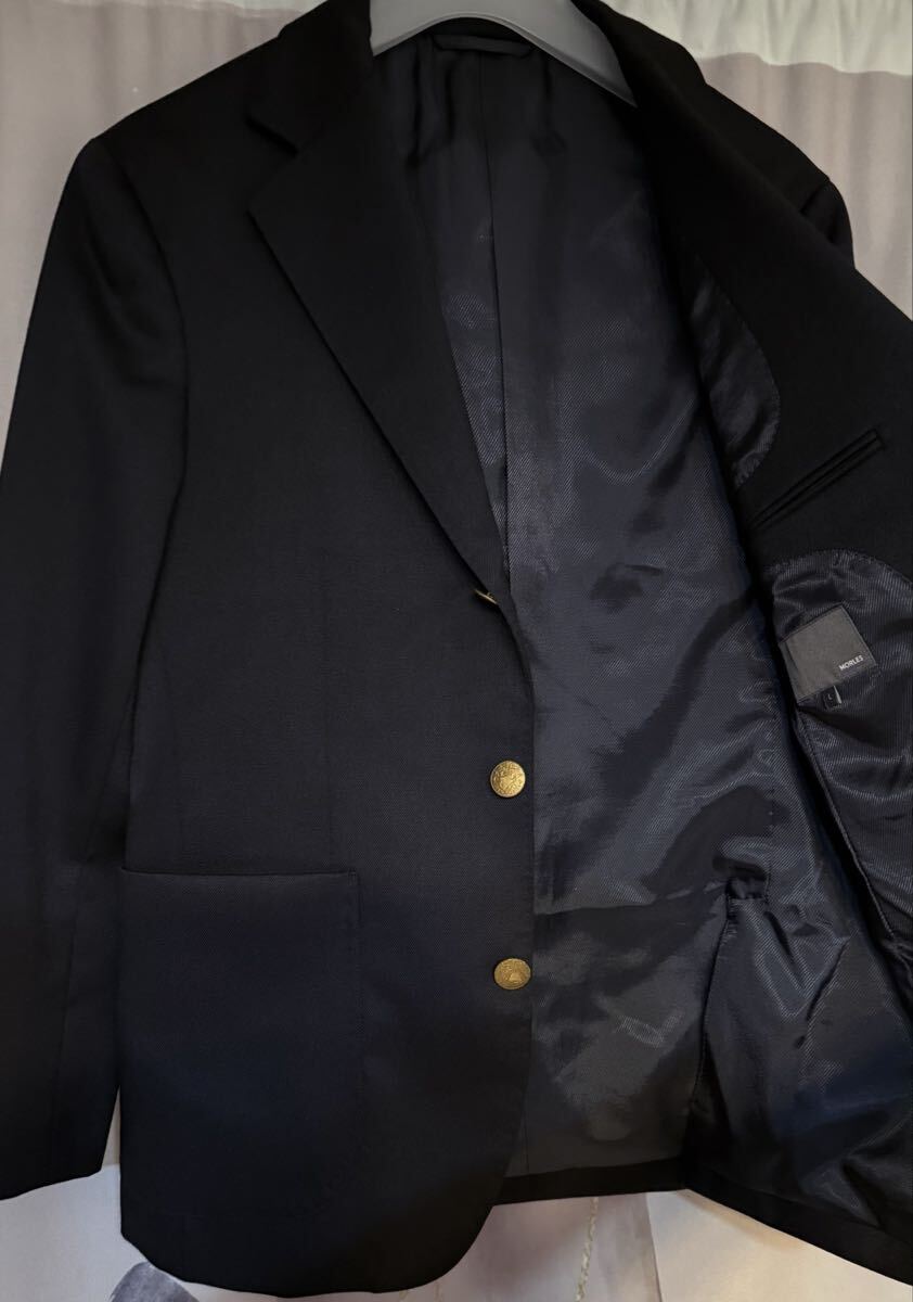 ・上質なウールにポリエステルをブレンドした裏地がキュプラで袖通りの良い紺ブレジャケットとなります。