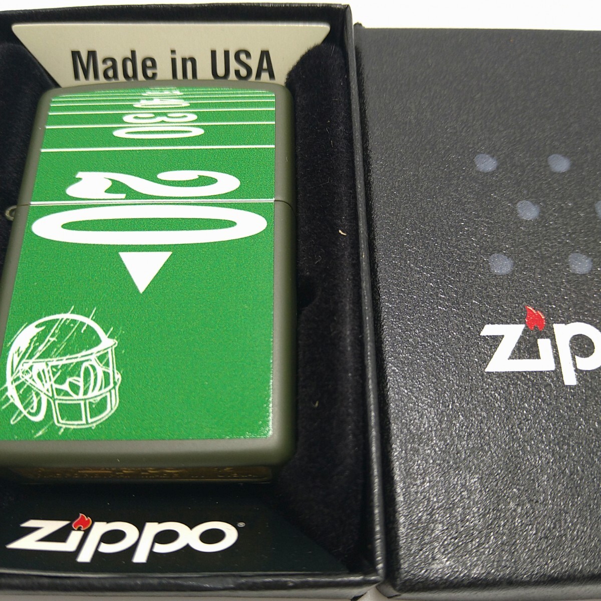 807【Zippo】 アメリカンフットボール グリーン オイルライター 喫煙具 ライター ヘルメット ロゴ