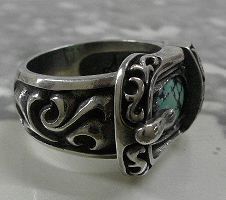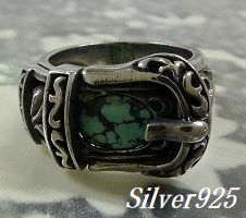シルバー925銀の天然石ターコイズ付ベルト バックル リング/23号ラスト1個