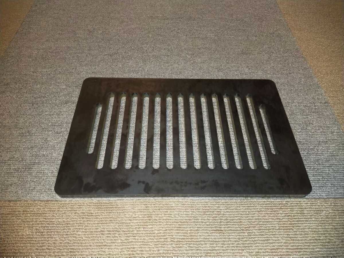 6mmの鉄板をレーザーで炉端大将の網と同じ大きさの280mm×180mmにカットしました、蓄熱効果で驚くほど肉が美味しく焼けます。