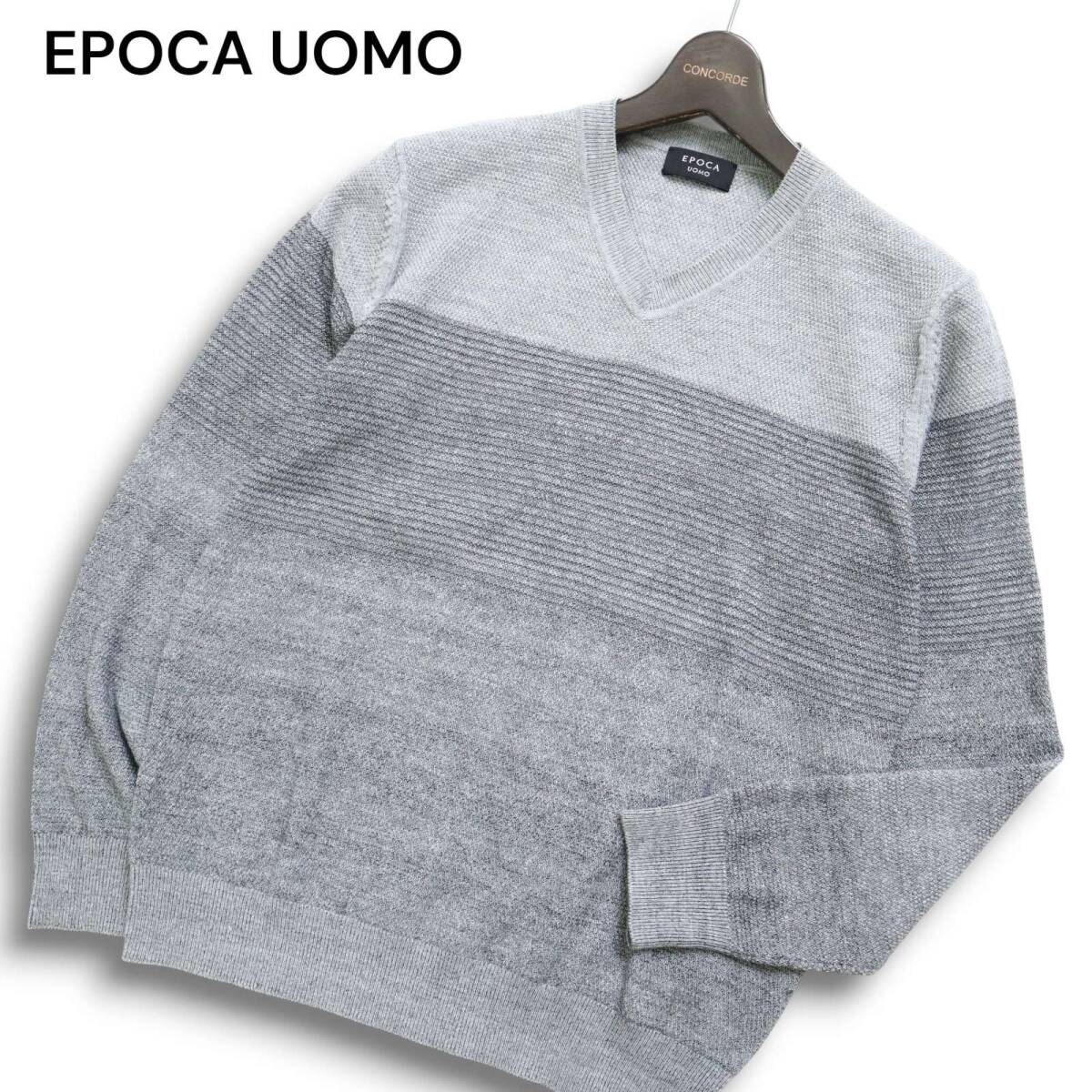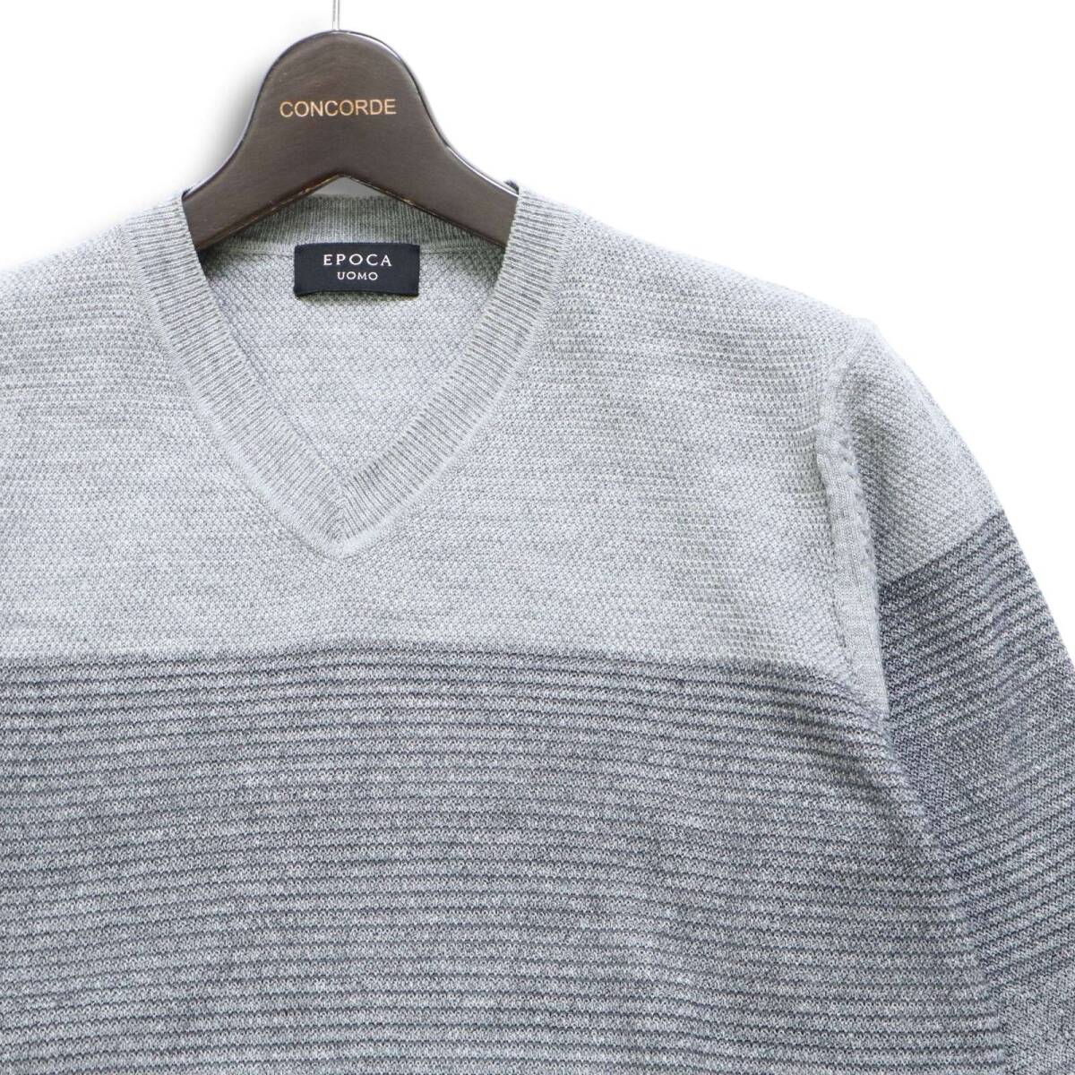EPOCA UOMO エポカ ウォモ 秋冬 ウール★ レーヨン グラデーション 切替 Vネック セーター ニット Sz.48 メンズ 灰 グレー