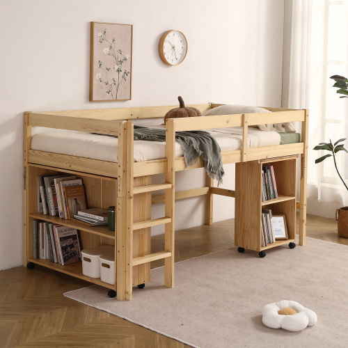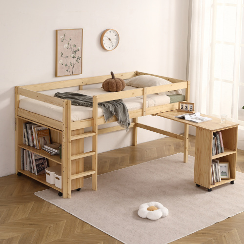 システムベッド ロフトベッド 木製 シングル ベッド ロータイプ ベッド デスク 本棚 机付き 学習机 コンパクト 本棚付き 木製ベッド 天然木