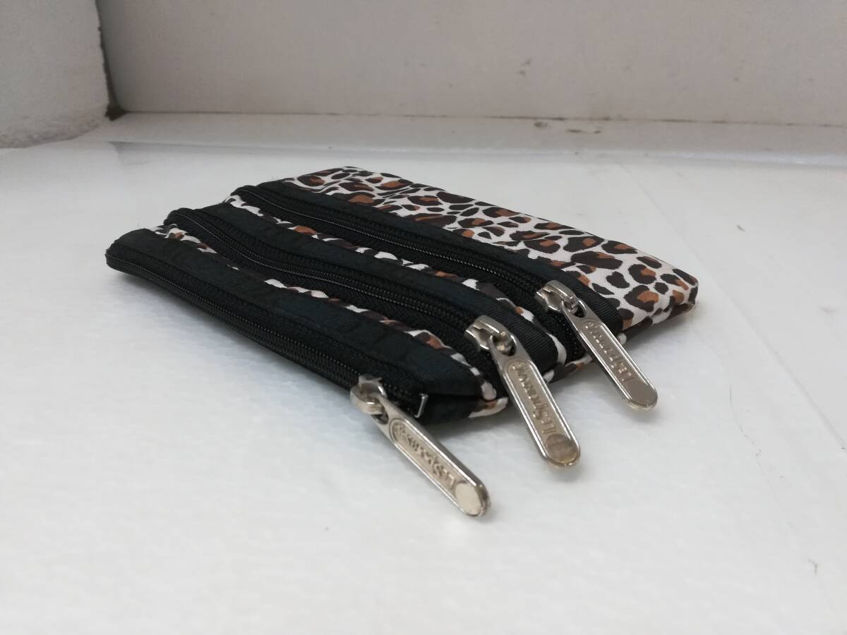 ■中古 レスポートサック LESPORTSAC レオパード柄 ヒョウ柄 3ZIP COSMETIC CERRADO 3段ポーチ