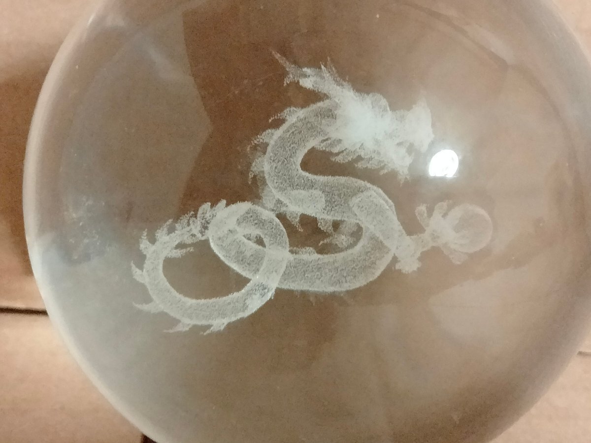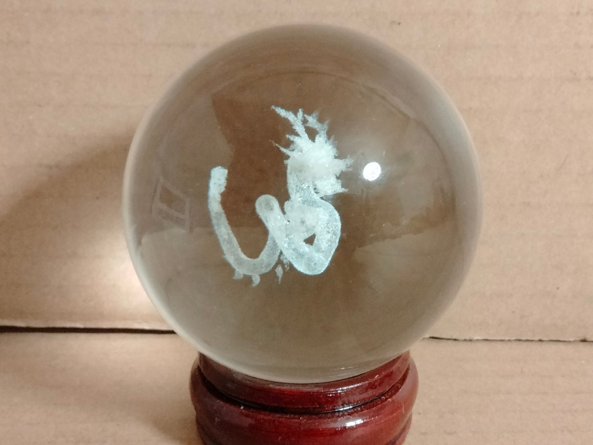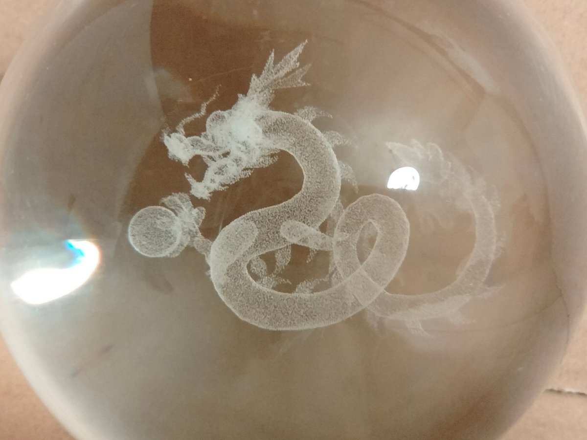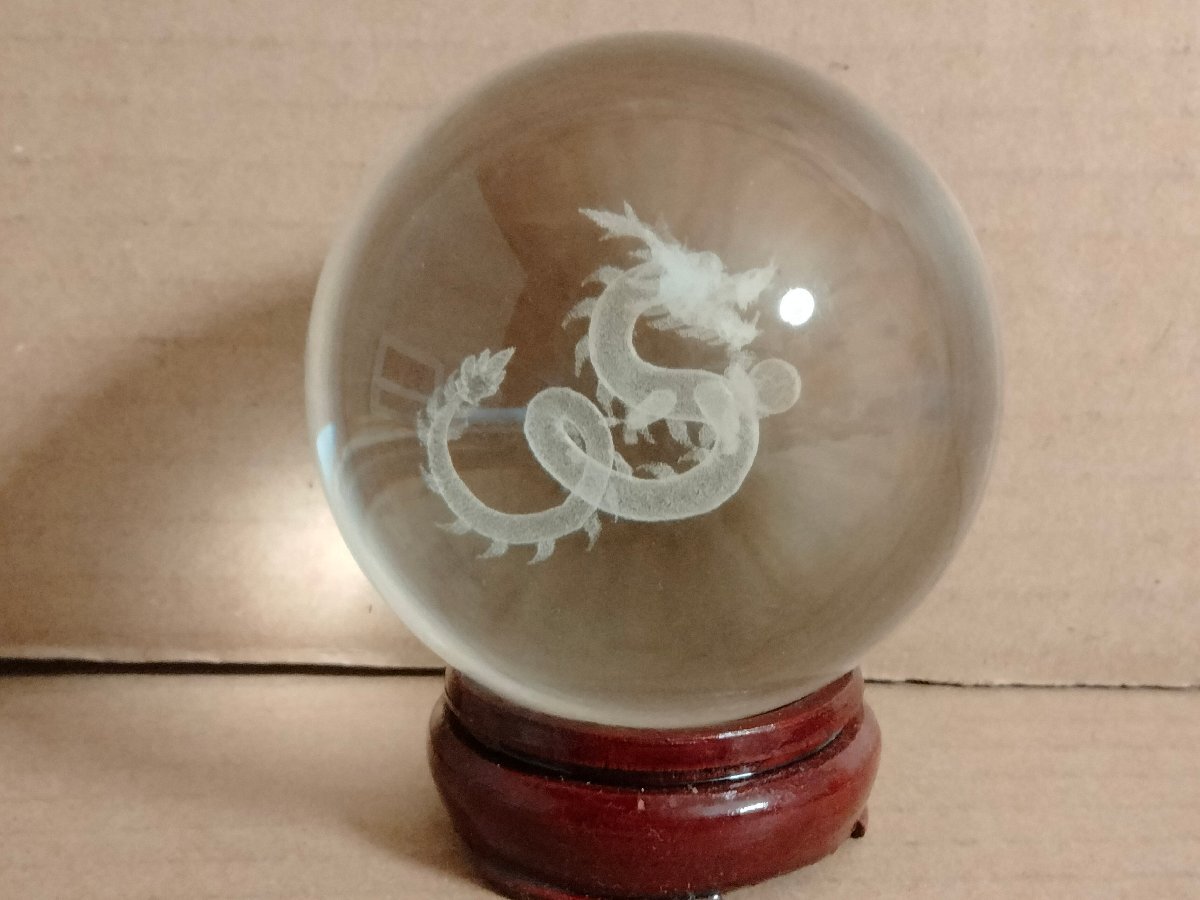 直径8cmの水晶玉に龍のレザー彫り
