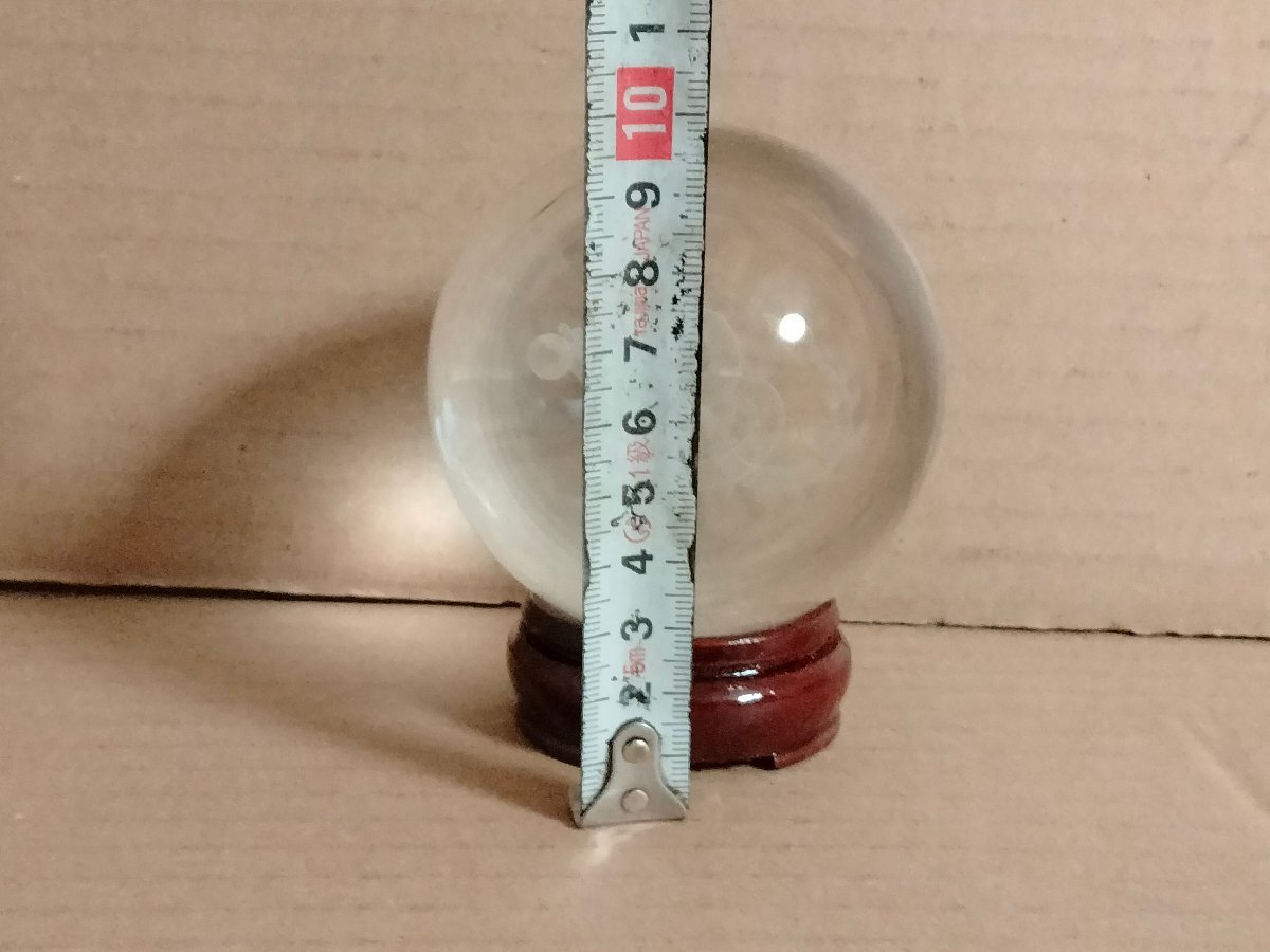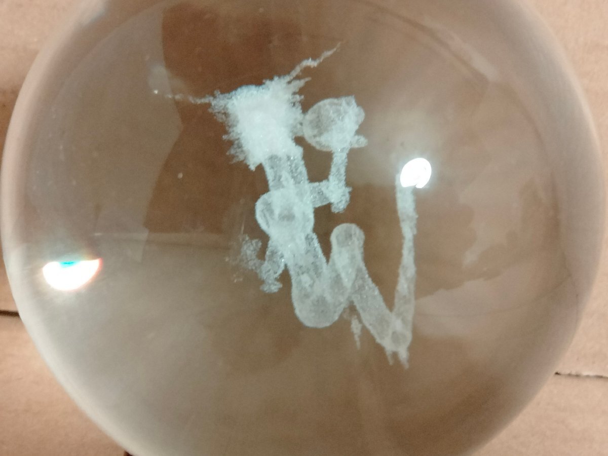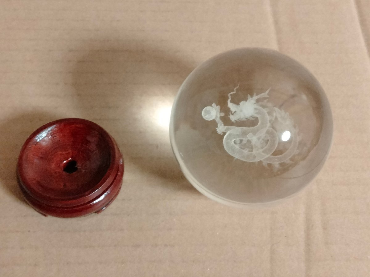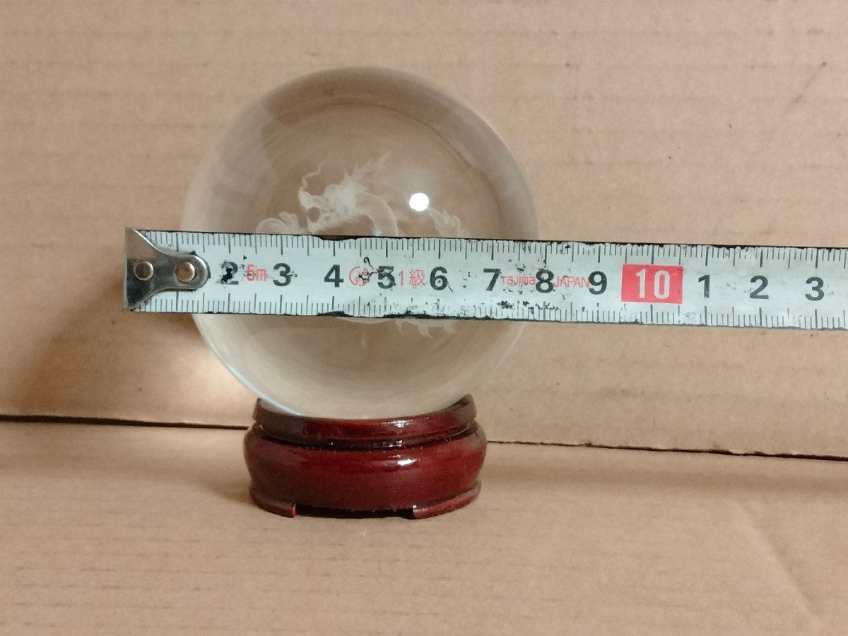 直径8cmの水晶玉に龍のレザー彫り