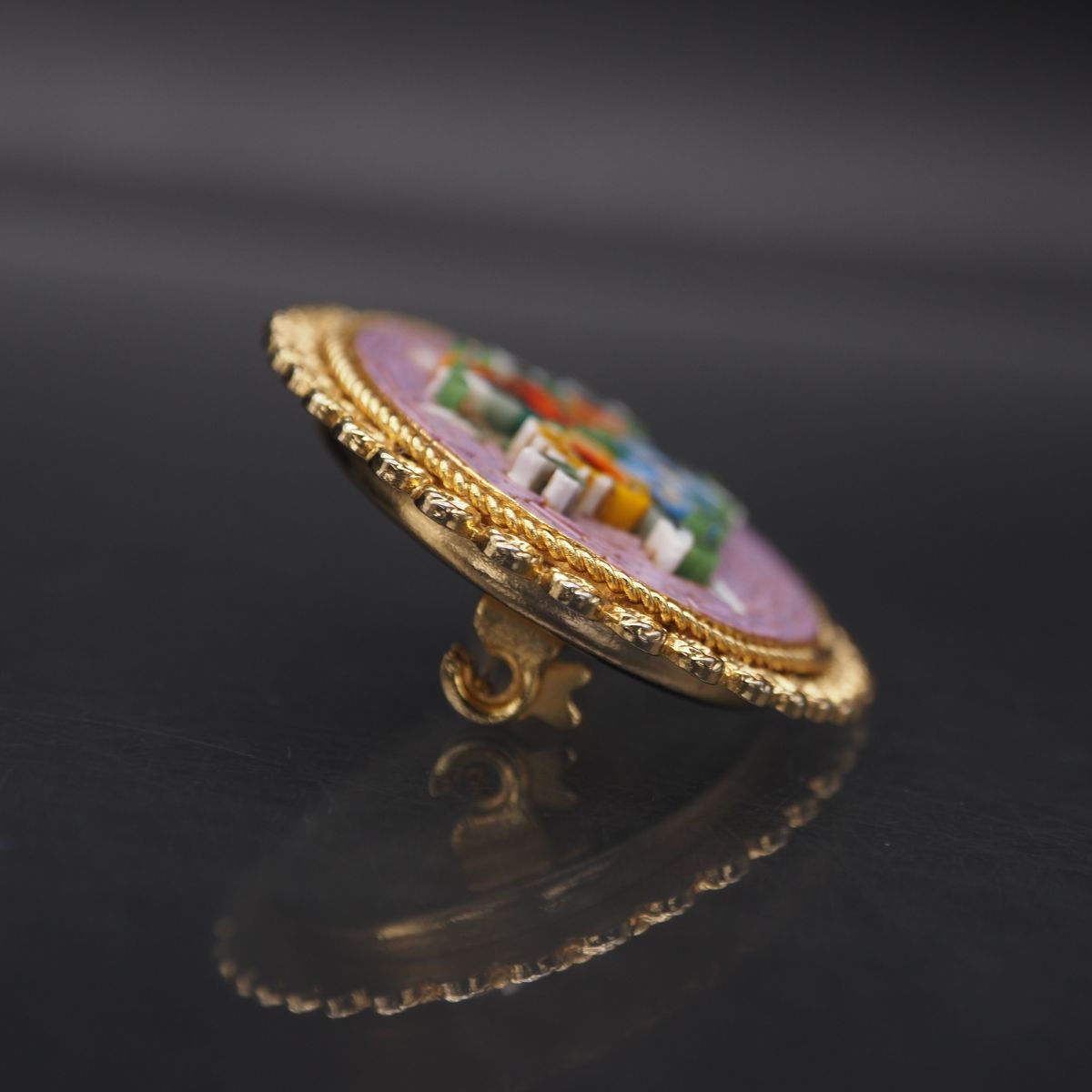 G293 モザイクガラス ブローチ フラワー ゴールド デザイン
