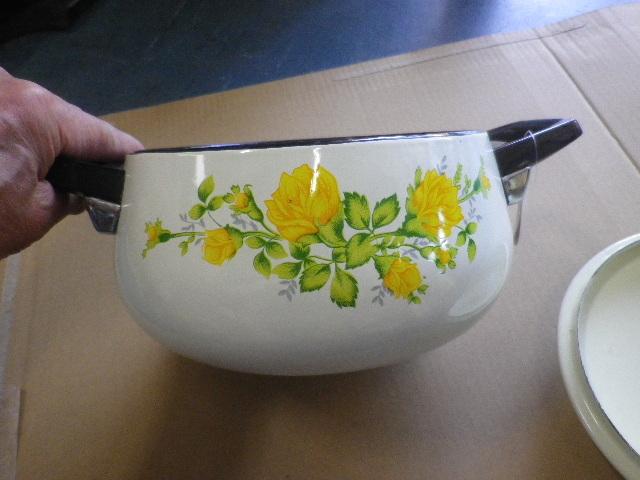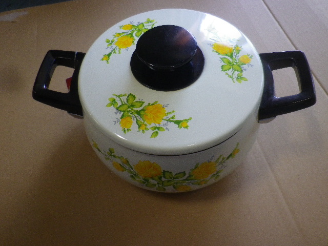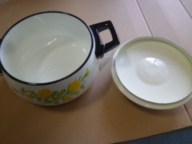 昭和レトロ 花柄ホーロー鍋 未使用 18㎝x10㎝