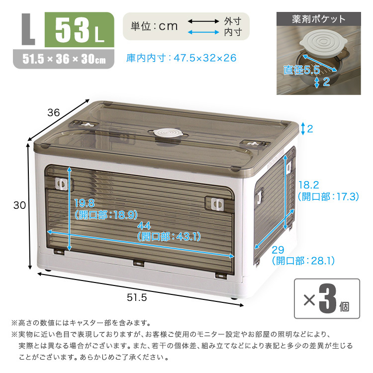 1つあたり(約)幅51.5 ×奥行 36 ×高さ 30cm(53L)