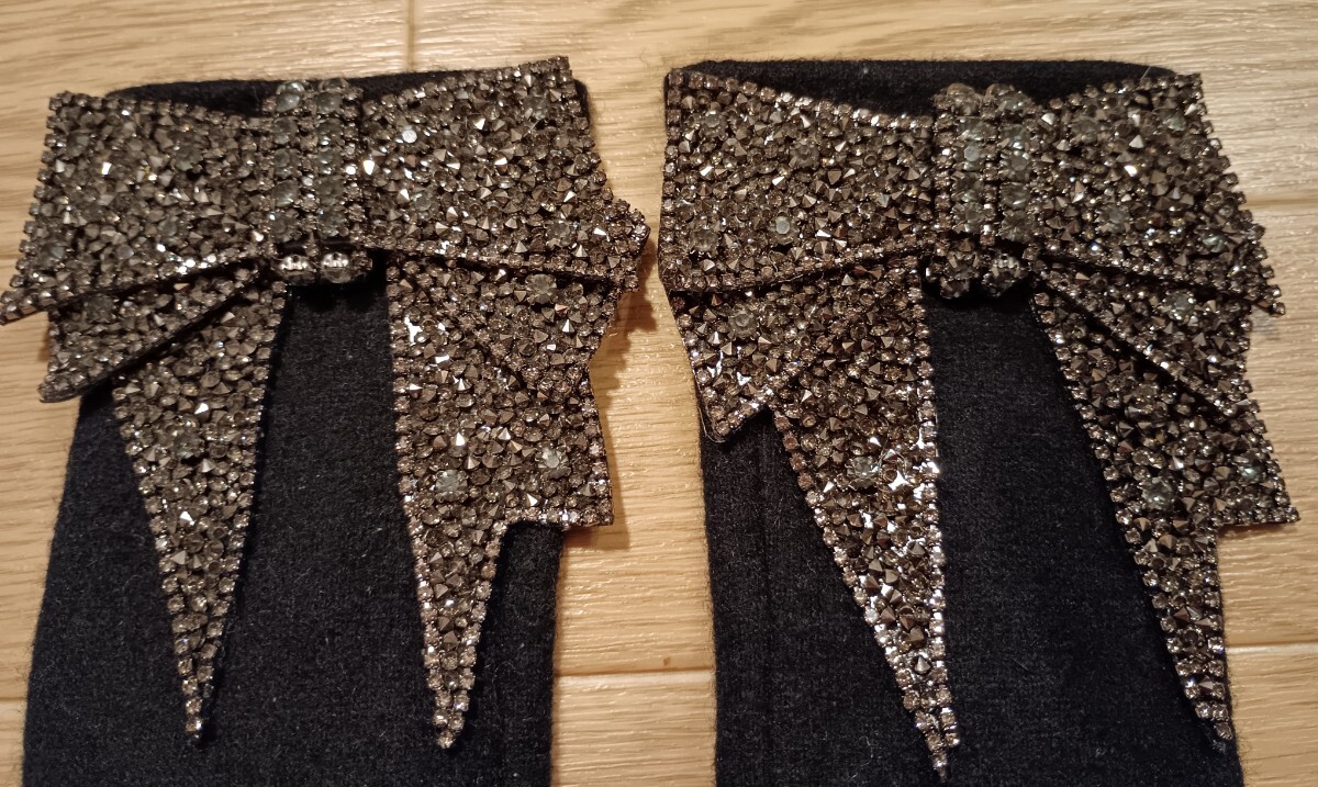 こちらは以前一目で気に入り購入しました♪ 難部分は御覧の通りでリボンが所々布から外れてしまっているところです..♪ 使用しようとしたところ残念ながら私にはサイズが少し小さかったようですぐに上記のようなことになりました..♪ なので外出の際の使用は1度もしていません.. こちらは大人用ではありますが、どちらかというと手の横幅が小さめな方にお勧め致します♪♪ リボン部分を縫うか貼り付けるかで上手く補正出来る方にお譲りしたいです♪ あまり見た事が無い位にビジューのリボン達がキラキラしていてキレイで可愛いです(^^) 画像で御判断の上NCNRで御了承いただける方のみ、どうぞ宜しくお願いします♪ 他にも可愛い物を出品しておりますので是非ご覧下さい(^_-)-☆ 同梱は大歓迎です♪ 必ず、自己紹介をご覧くださいませ!! | |||