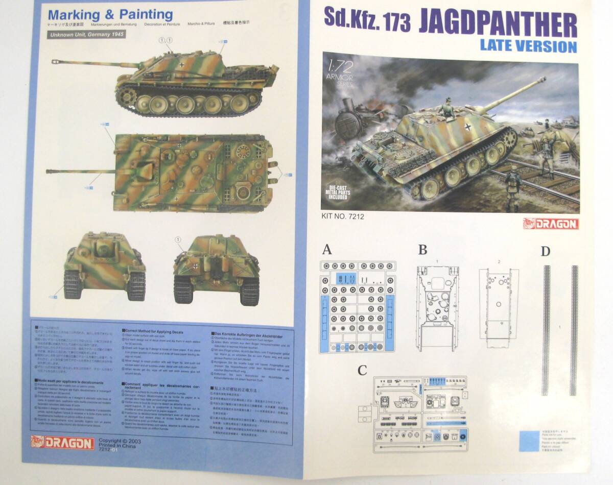 【丸-2636】未組立品/DRAGON/ドラゴン/ ドイツ駆逐戦車ヤークトパンターSd.kfz.173/後期型/ 1:72アーマーシリーズ/内袋未開封品①(TK) |