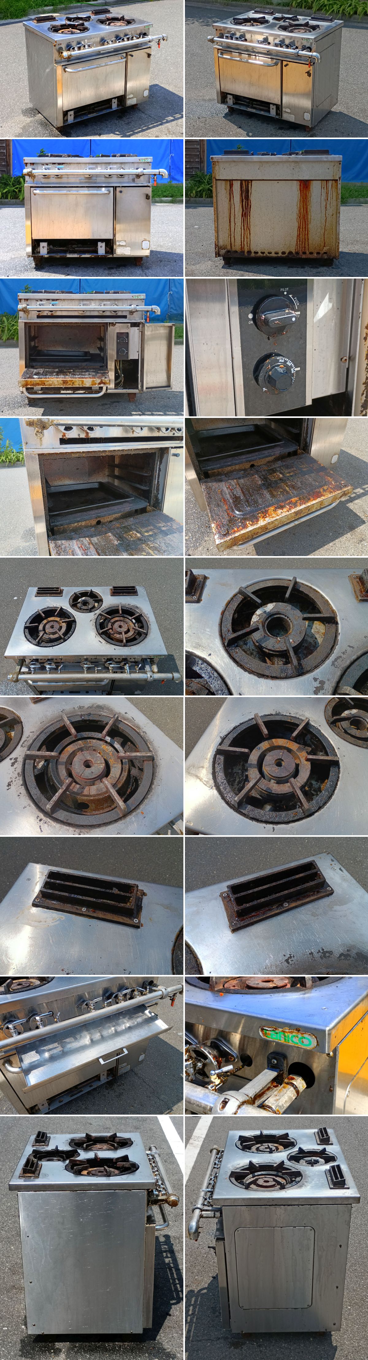 本体の表面やバーナー周辺には、焦げ付き・油汚れ・焼け跡・サビなどが見られます。 簡易的な清掃は行いましたが、使用に伴う汚れの全てを落とすことはできておりません。 また、外観にはキズや痛みもございます。