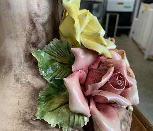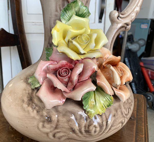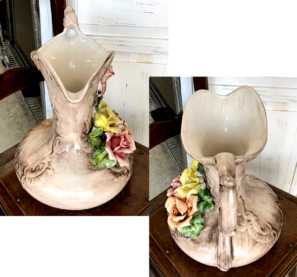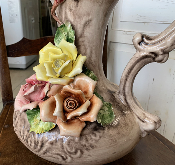 イタリア製 花瓶 ピッチャー型 高さ34cm カポディモンテスタイル 陶花 バラ 花器 フラワーベース 陶磁器 置物 札幌 中央区 南12条店