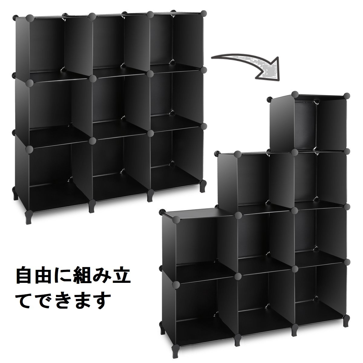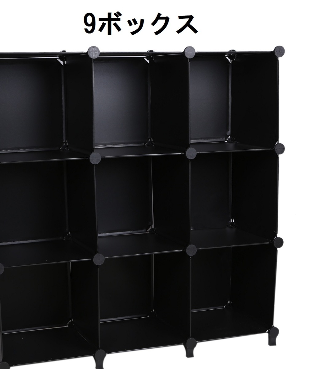 収納棚 カラーボックス 収納ボックス 9個3段ボックス3列 収納ラック 収納ケース 本棚 ブラック黒 キューブ型収納BOX 組立式 MK-041