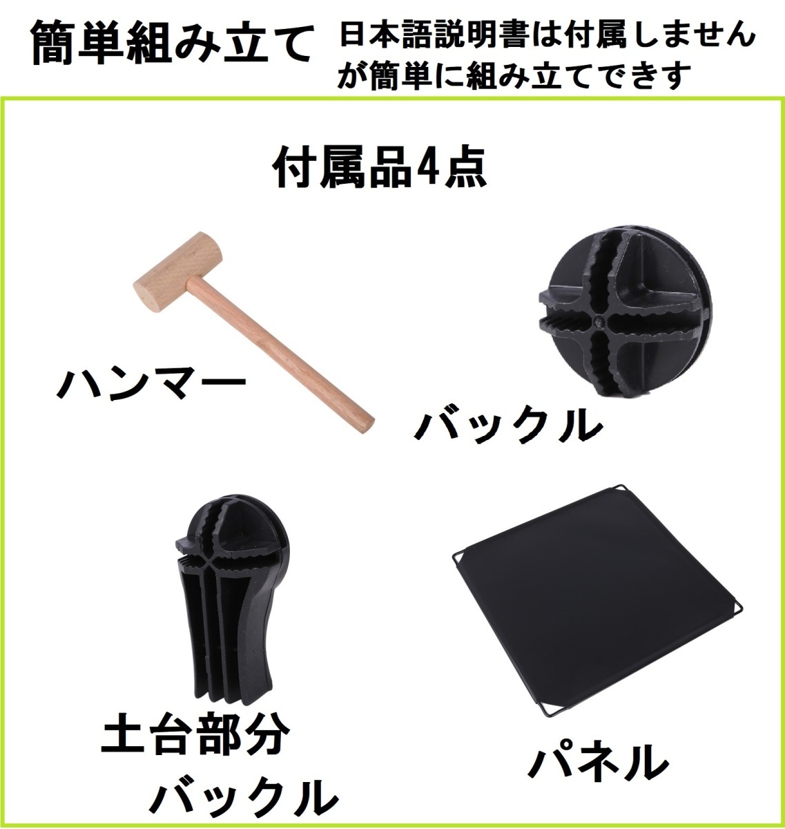 パネルとバックルを組み合わせるだけですので簡単に組み立てることができます。
