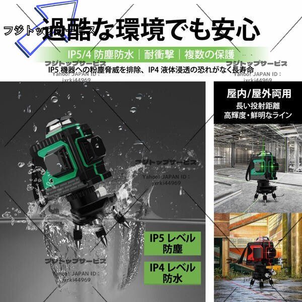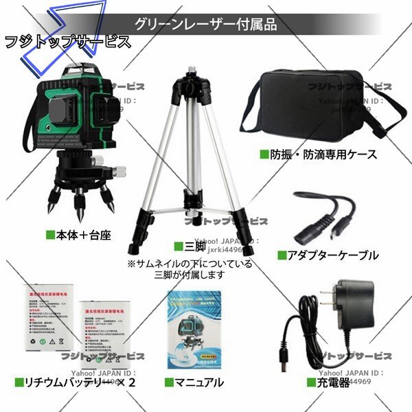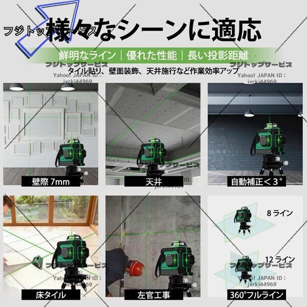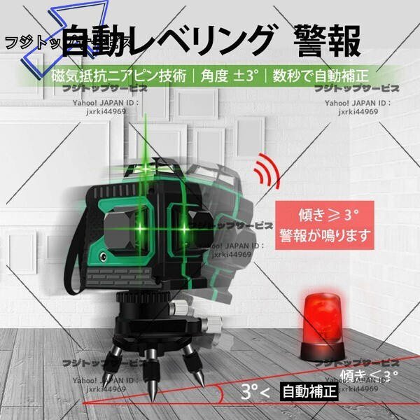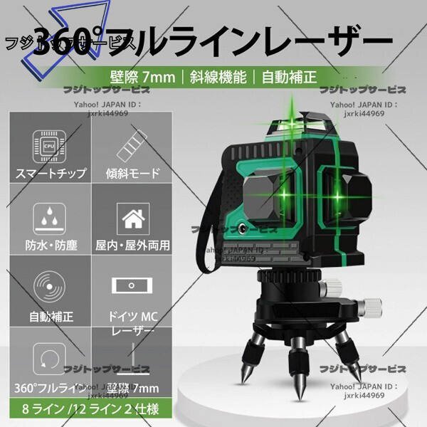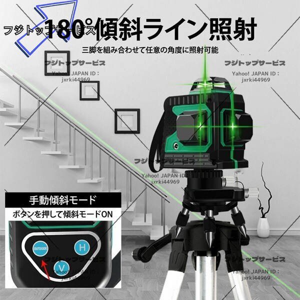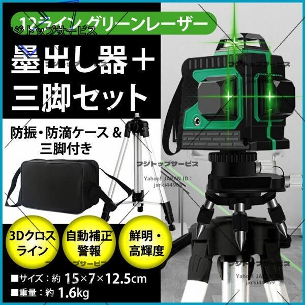 大特価 即納 12ライン グリーン レーザー 墨出し器 三脚付 クロスラインレーザー 自動補正機能 高輝度 高精度 360°4方向大矩照射モデル