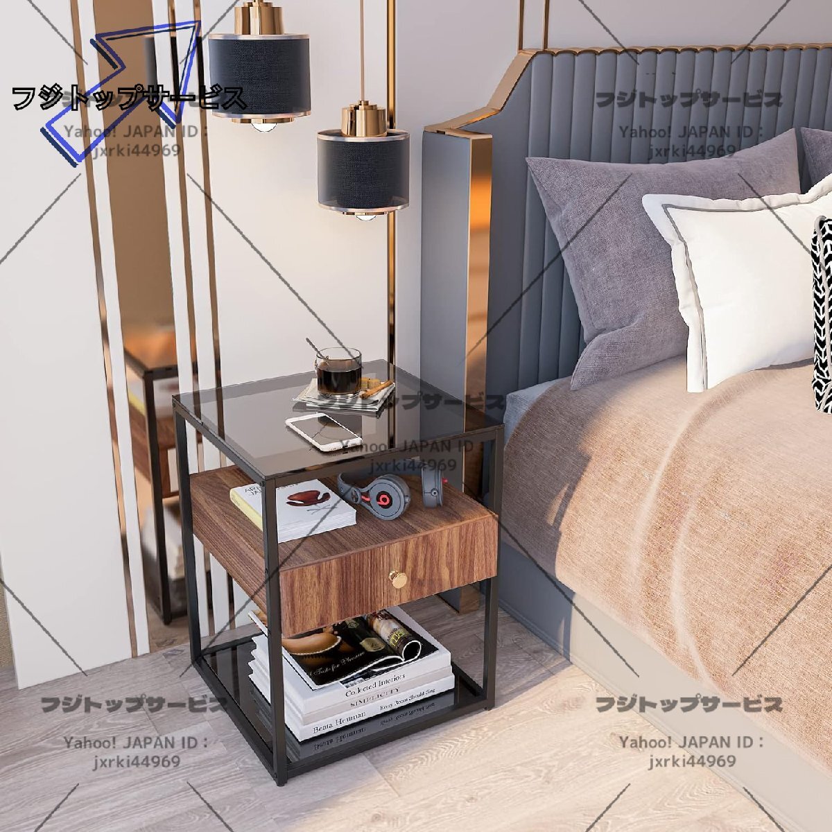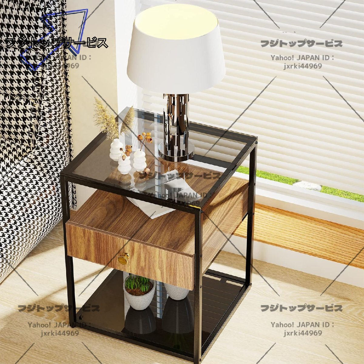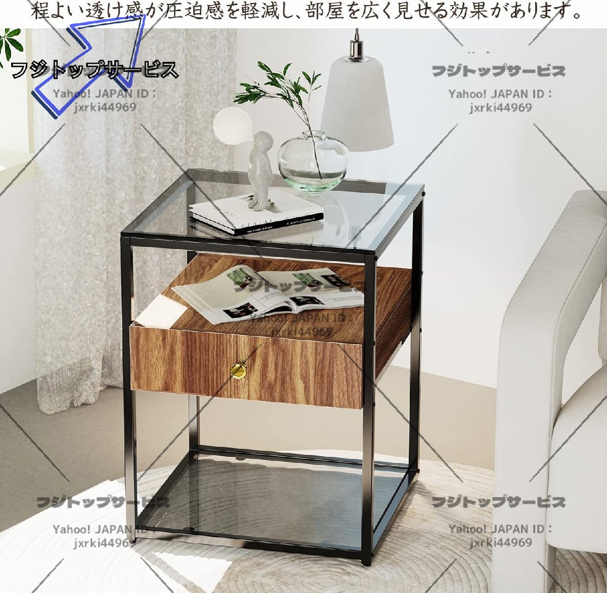 サイドテーブル ナイトテーブル 引き出し ガラス ベッドサイドテーブル おしゃれ サイドチェスト 収納 北欧 コンパクト
