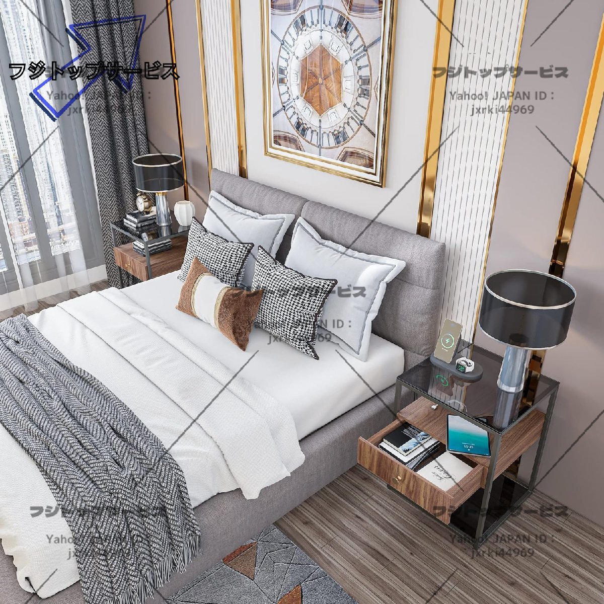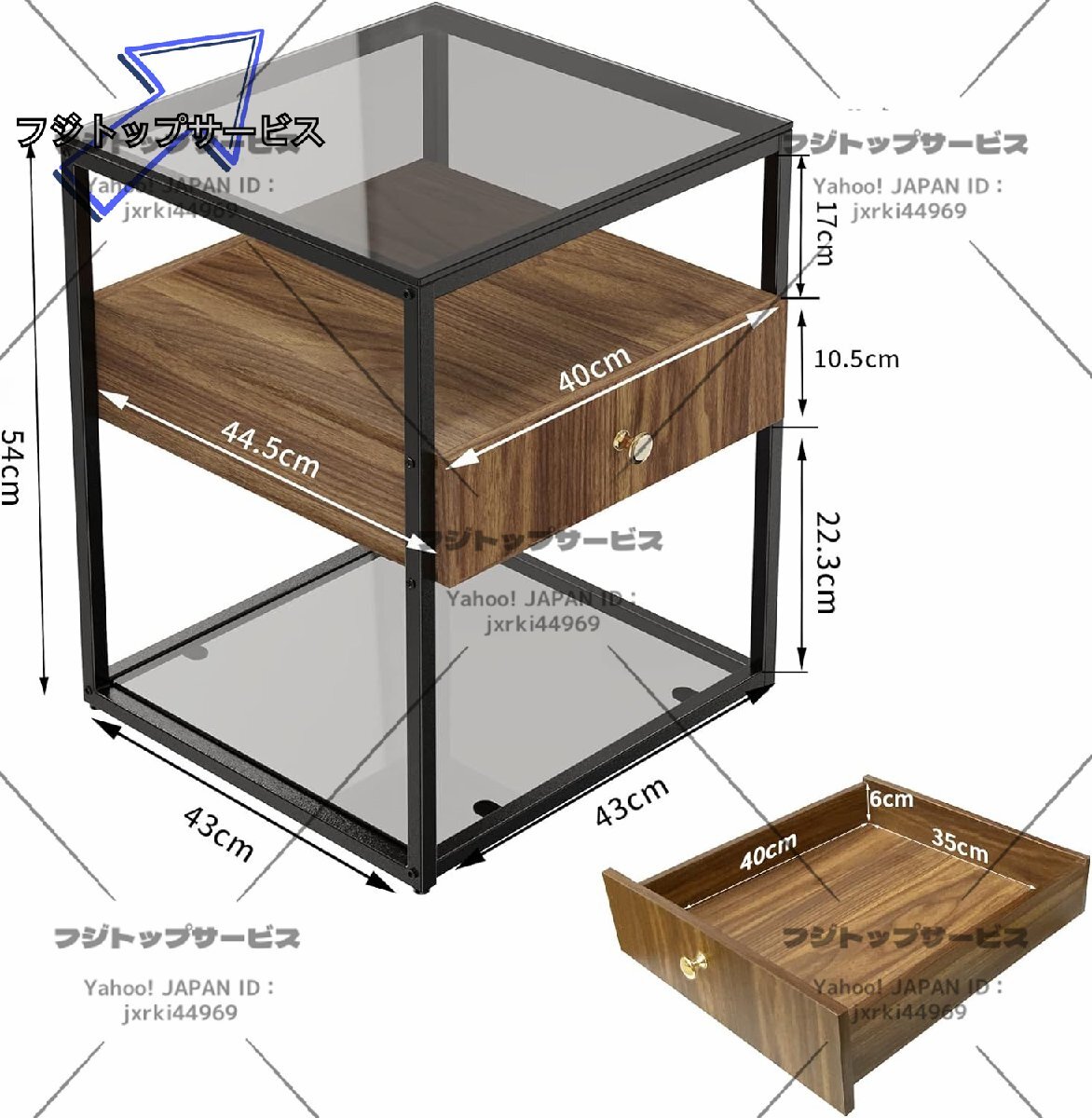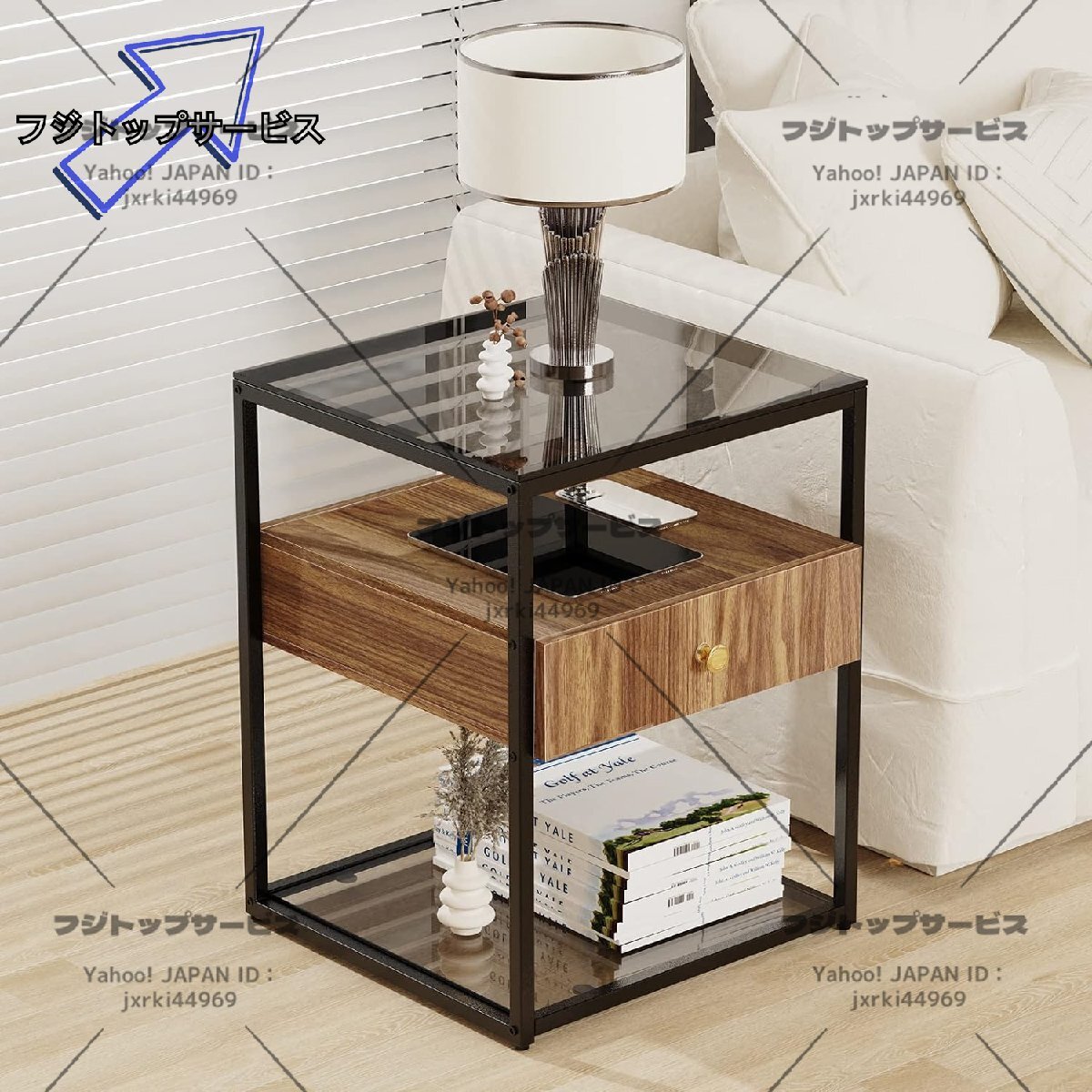 サイドテーブル ナイトテーブル 引き出し ガラス ベッドサイドテーブル おしゃれ サイドチェスト 収納 北欧 コンパクト