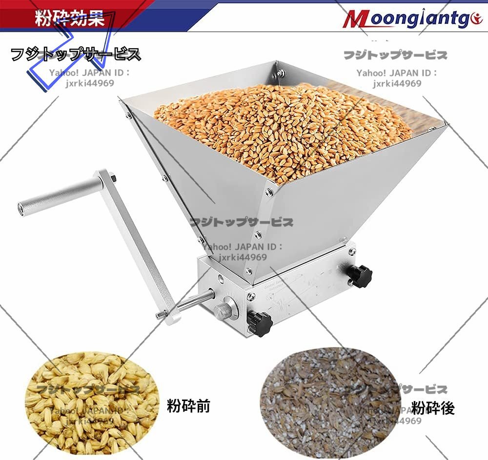 ★状態:新品未使用 麦芽粉砕ロールミル主にモルト(麦芽)、大麦の粉砕に適用します。家庭でのビール/ワイン醸造用にお勧めです。※とうもろこし、大豆などの粉砕にはお勧めしません。 304ステンレス鋼材質ローラーは304食品級のステンレス鋼でできており、食品と直接接触できます。安心安全な作業を楽しめます。 3.5kg大容量厚み1mm硬化アルミ製ホッパー、一回に最大3.5Kgの穀物を粉砕できます。 作業精密度調整可能ローラー調整可能距離:0.64-2.54 mm。ニーズに合わせてローラーギャップを調整することで、粉砕厚さを簡単に調整できます。 【商品スペック・仕様】: ローラー材質:304ステンレス鋼 ローラーサイズ:φ28 x 127mm ボディーとハンドル材質:アルミニウム合金 ホッパー容量:3.5Kg/7.7LB ローラー調整可能な距離:0.025-0.1インチ(0.635-2.54 mm) 商品にご注意すべきこと 1.ご使用する前に保護膜を剥がしてください。 2.手動粉砕機は完全に粉体状態に到達するまで研磨することができず、粒と粉体の混合状態から出てきますが、より細かくしたい場合は、さらに数回粉砕する必要があります。 3.子供の手が届かないところに置いてください。 4.本製品は錆びにくいステンレス鋼とアルミニウム合金で作っていますが、商品寿命を延長するために使用後はしっかり洗ってから湿気を拭き取り、暗く乾燥した場所で保管してください。 5.使用方法:手動のハンドル又は3/8インチのドリルに接続して作業できます。安全使用のためドリル回転速度は200-300RPMにしてください。